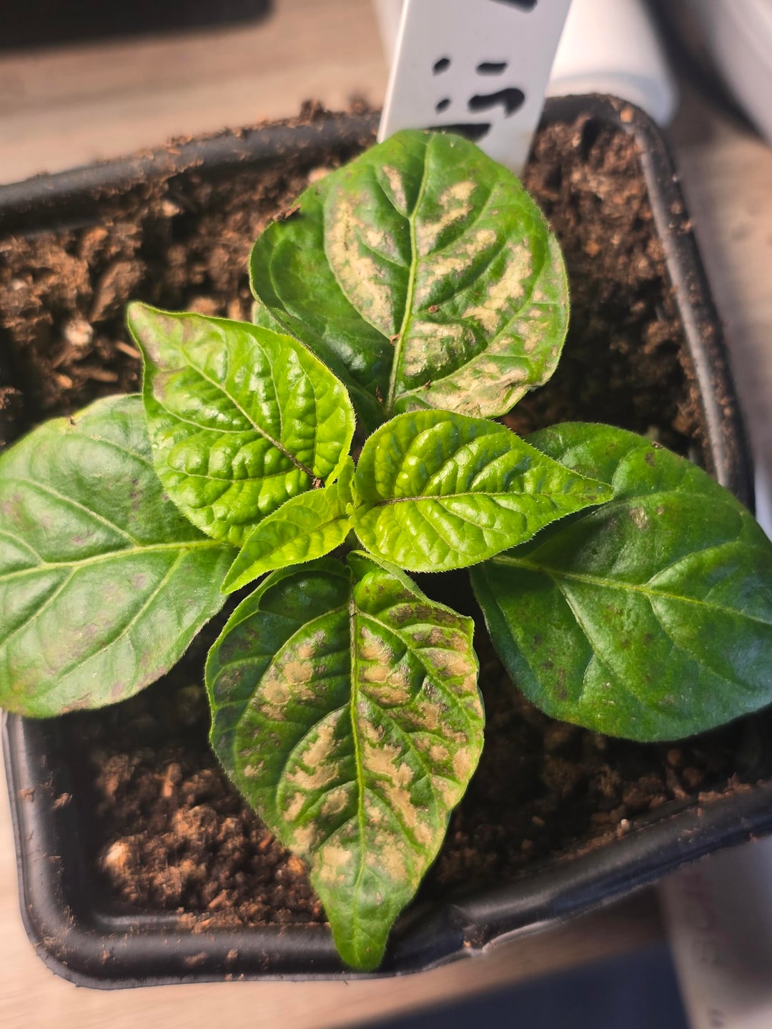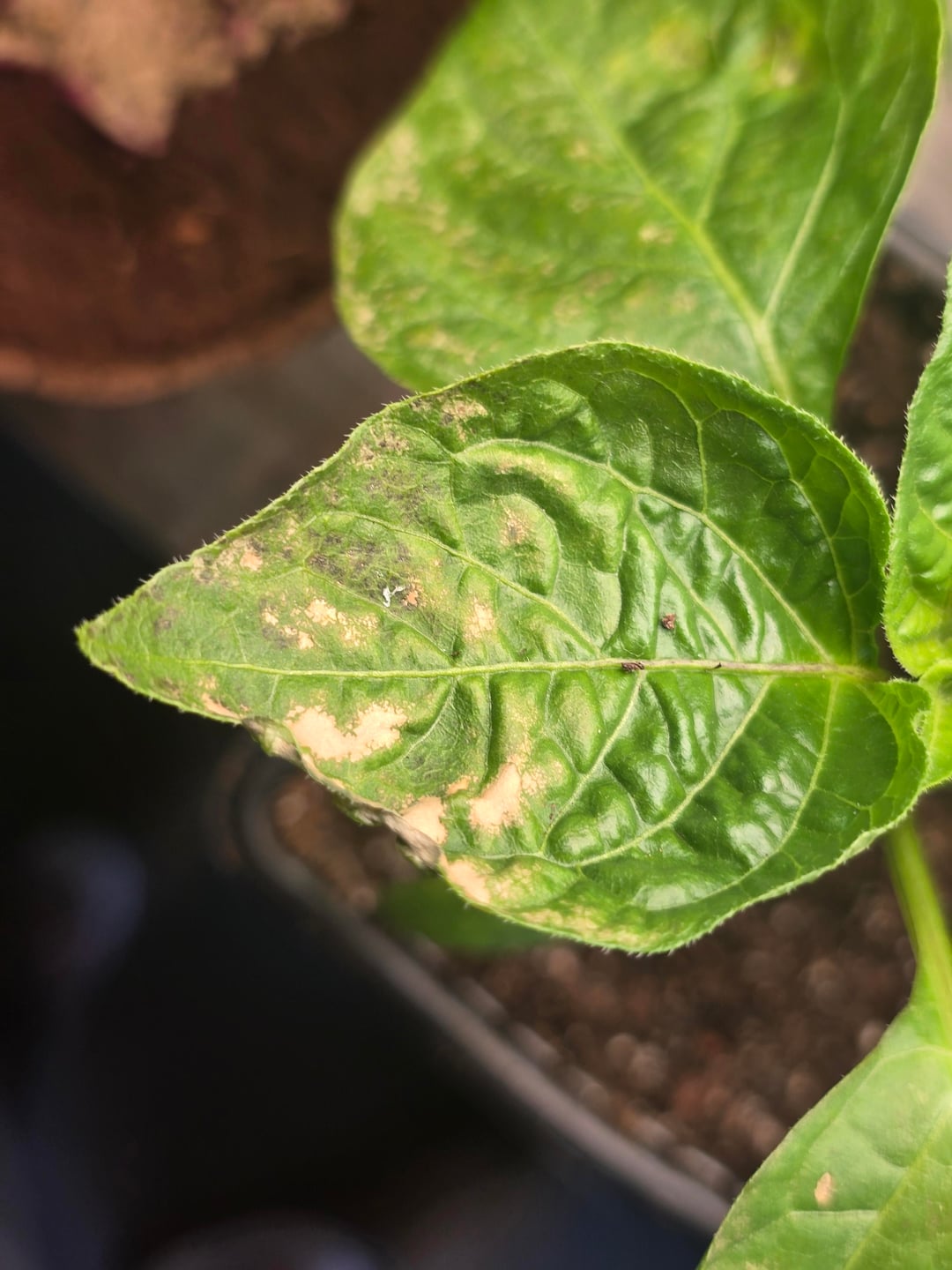 Just recently potted these up into happy frog potting soil from hydroponic coir sponges. These are on several different varieties of peppers. Any thoughts on how to treat and prevent this would be amazing! Thank you all for your advice!