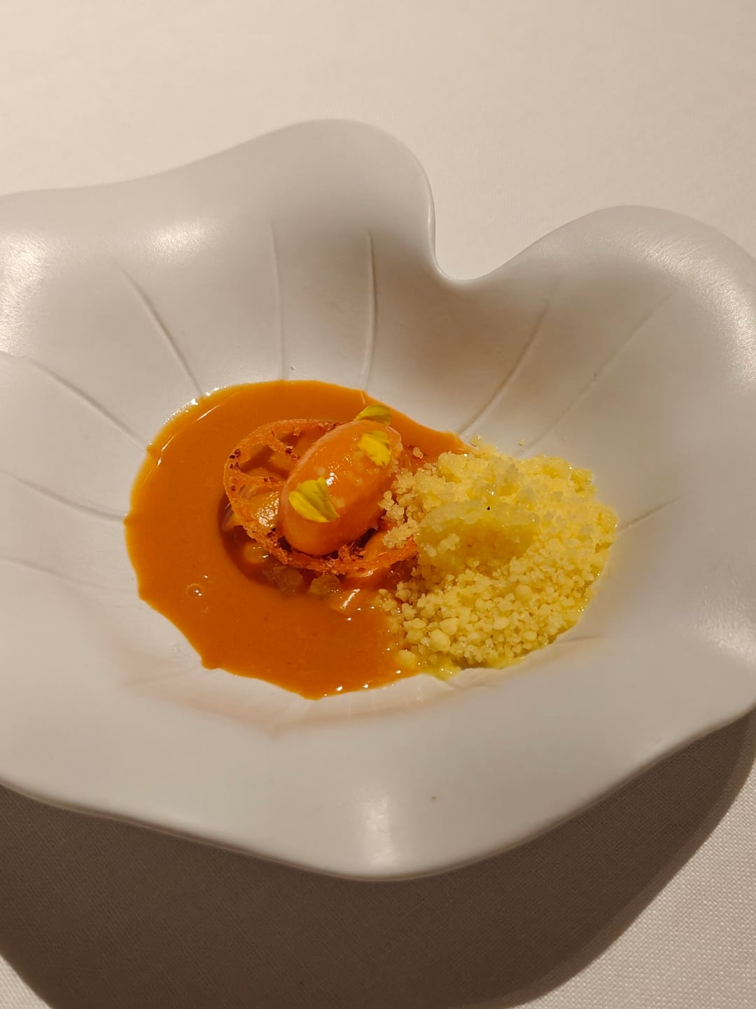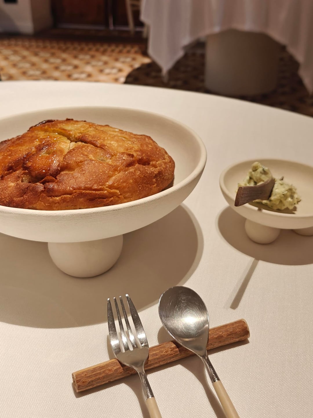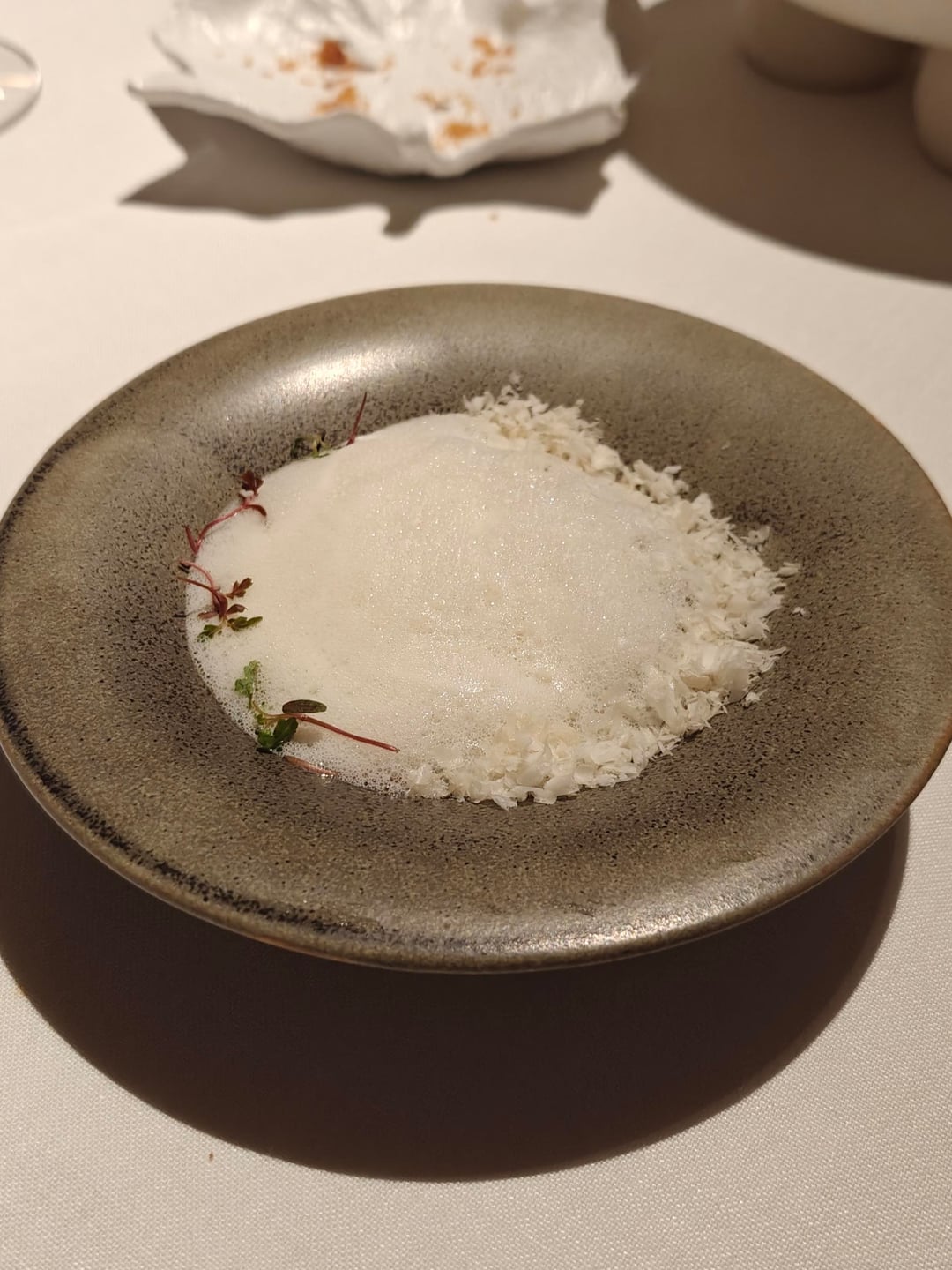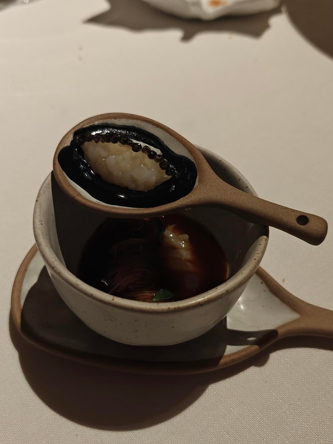Before moving onto the actual main dish, I got a salpicon of bivalvia (a type of shellfish), which tastes of a bright vinegar. The first real meat dish was a stew of serrano pork with thyme foam. Afterwards, I was served a quail in a pickle fond and a quail leg on the side.