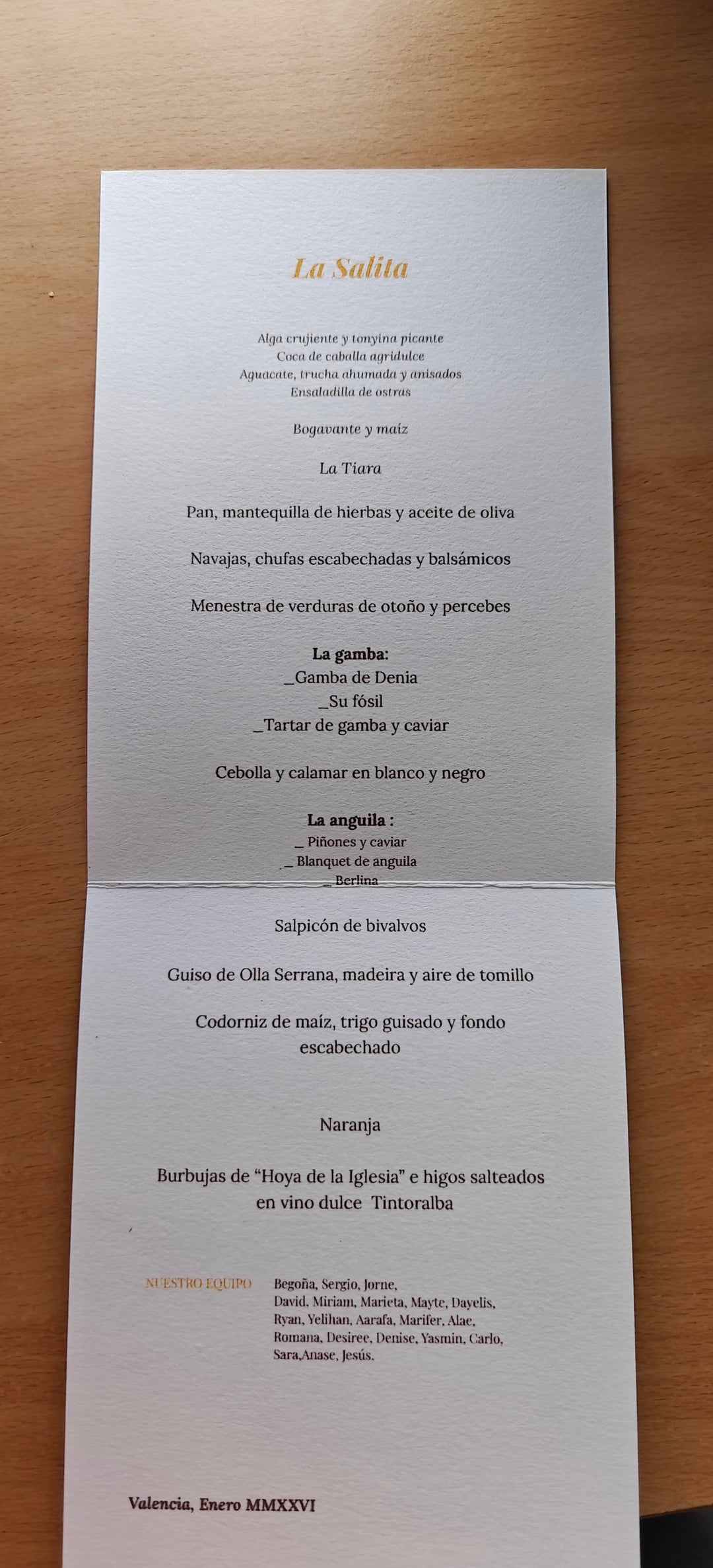 La Salita's head chef, Begoña Rodrigo, is self taught and worked in various hotels all over Europe. She came back to her hometown after 20 years of working abroad and opened the restaurant in 2005. It gained its first Michelin star in 2019.