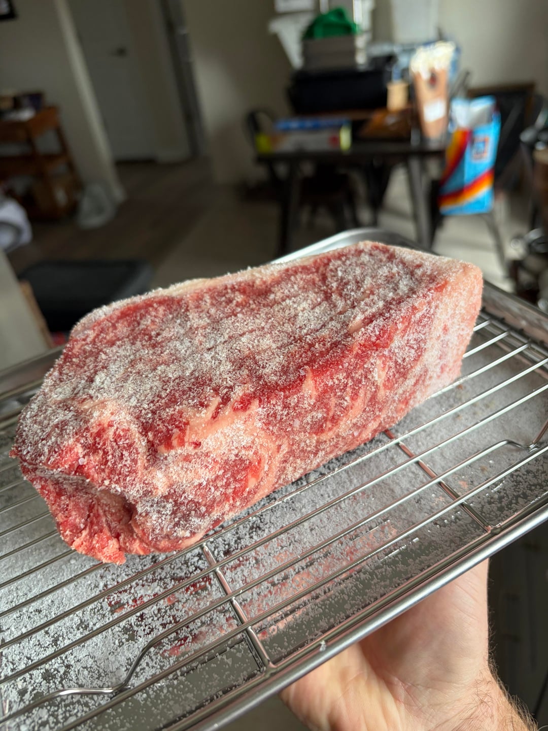 Currently dry brining this thick strip, can’t wait to give it a go. Gonna cut the other 2 into 4 and freeze em. Chicken or pork next! Stay tuned for the cook.
