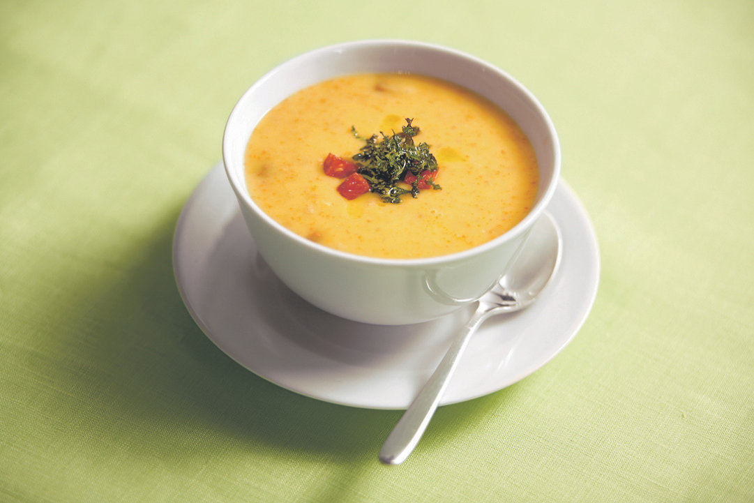 - When the soup has cooled slightly, purée it with a food processor, blender or immersion blender. Season to taste with salt.