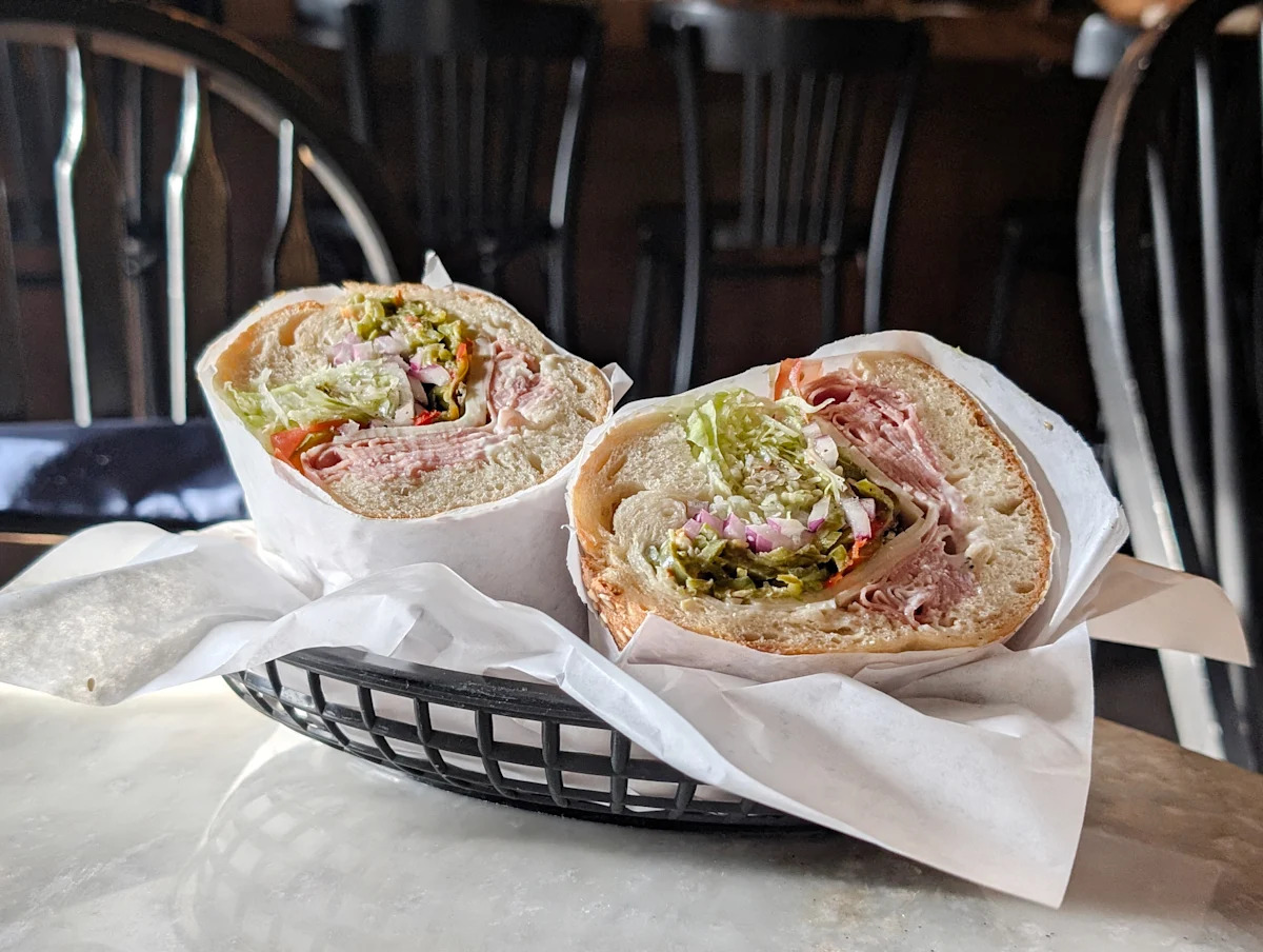 You really can’t go wrong with the classic Italian grinder ($17). An impressively pillowy hoagie roll packed with a beguiling stratum of mortadella, soppressata, ham, and provolone, along with a garden of shredded veg doused with garlic aioli and oregano vin. Spice hounds might seek out the specifically spicy version ($20), but the base model already features a sinus-clearing pepper giardiniera.
