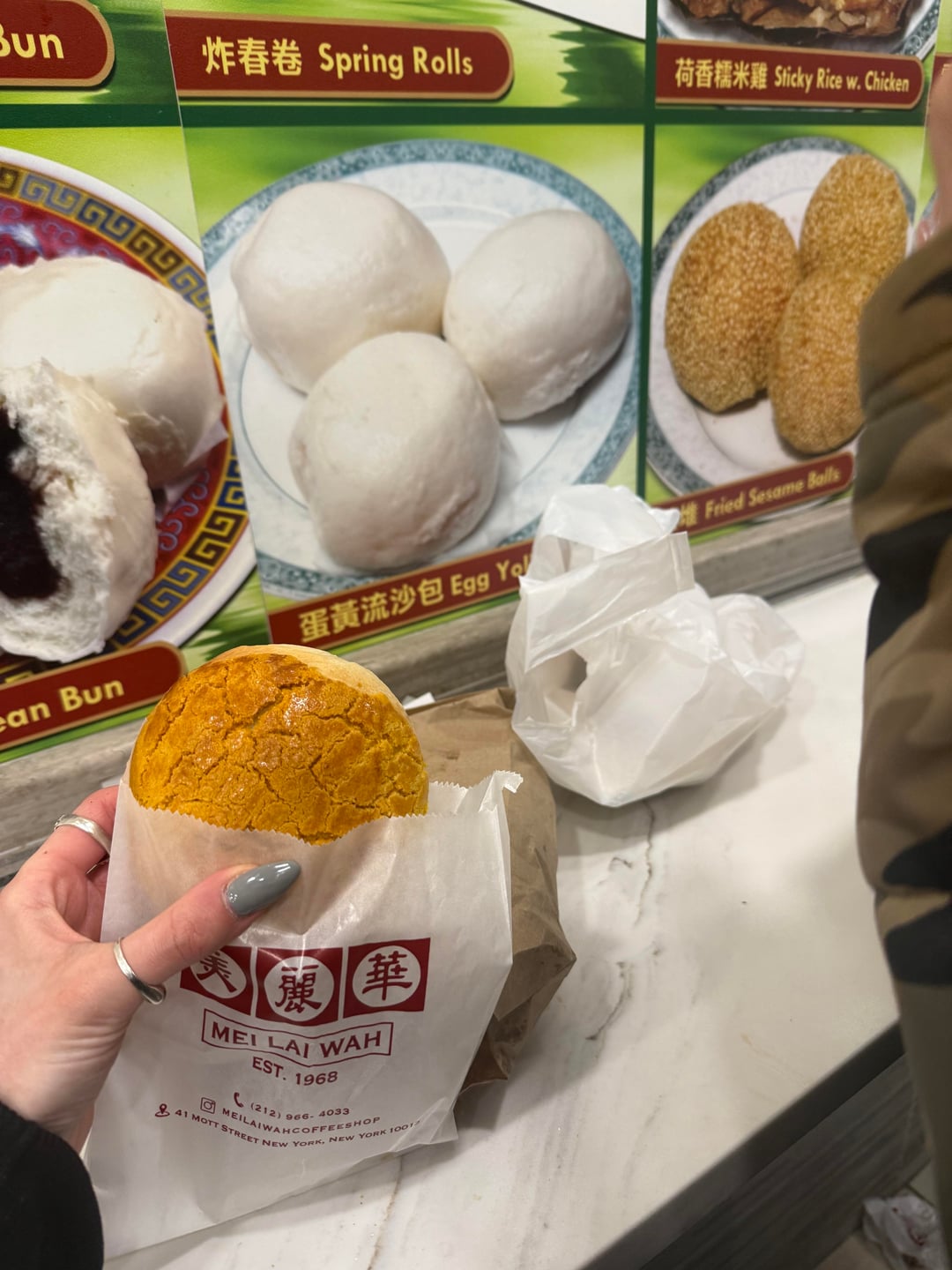 Edit: Sorry! Forgot to say I had two pieces of Malaysian beef jerky and one of pork. It’s one coconut cream bun and one Mei Lai Wah pineapple roast pork bun