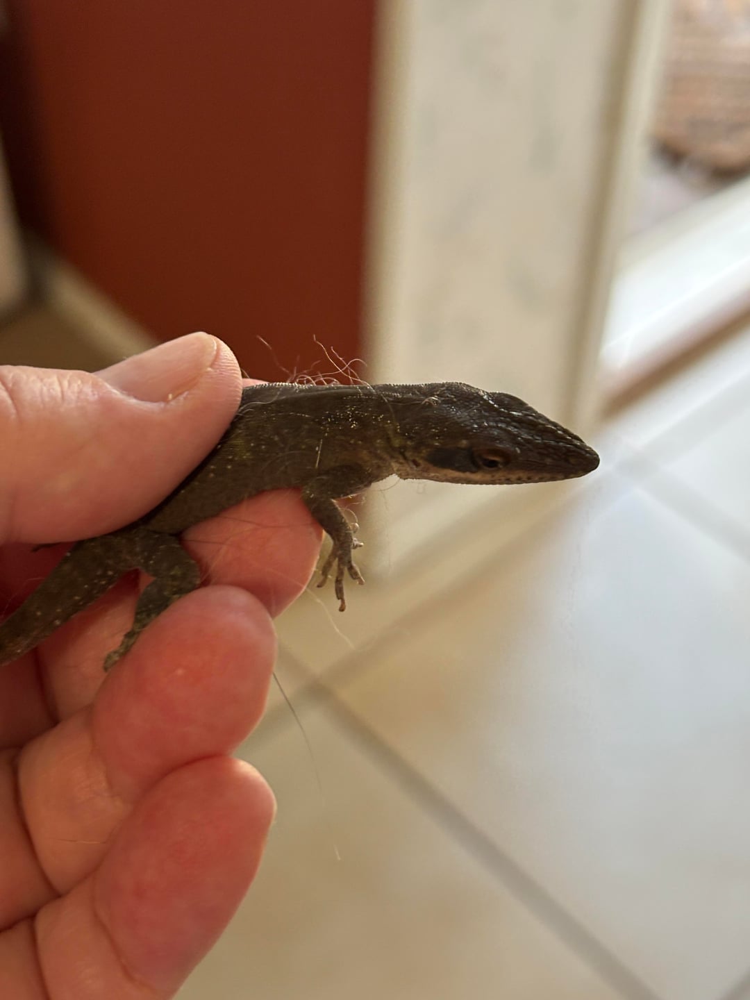 2. NO ANOLES WERE HARMED OVER LUNCHTIME – He went back into nature via the back fence!