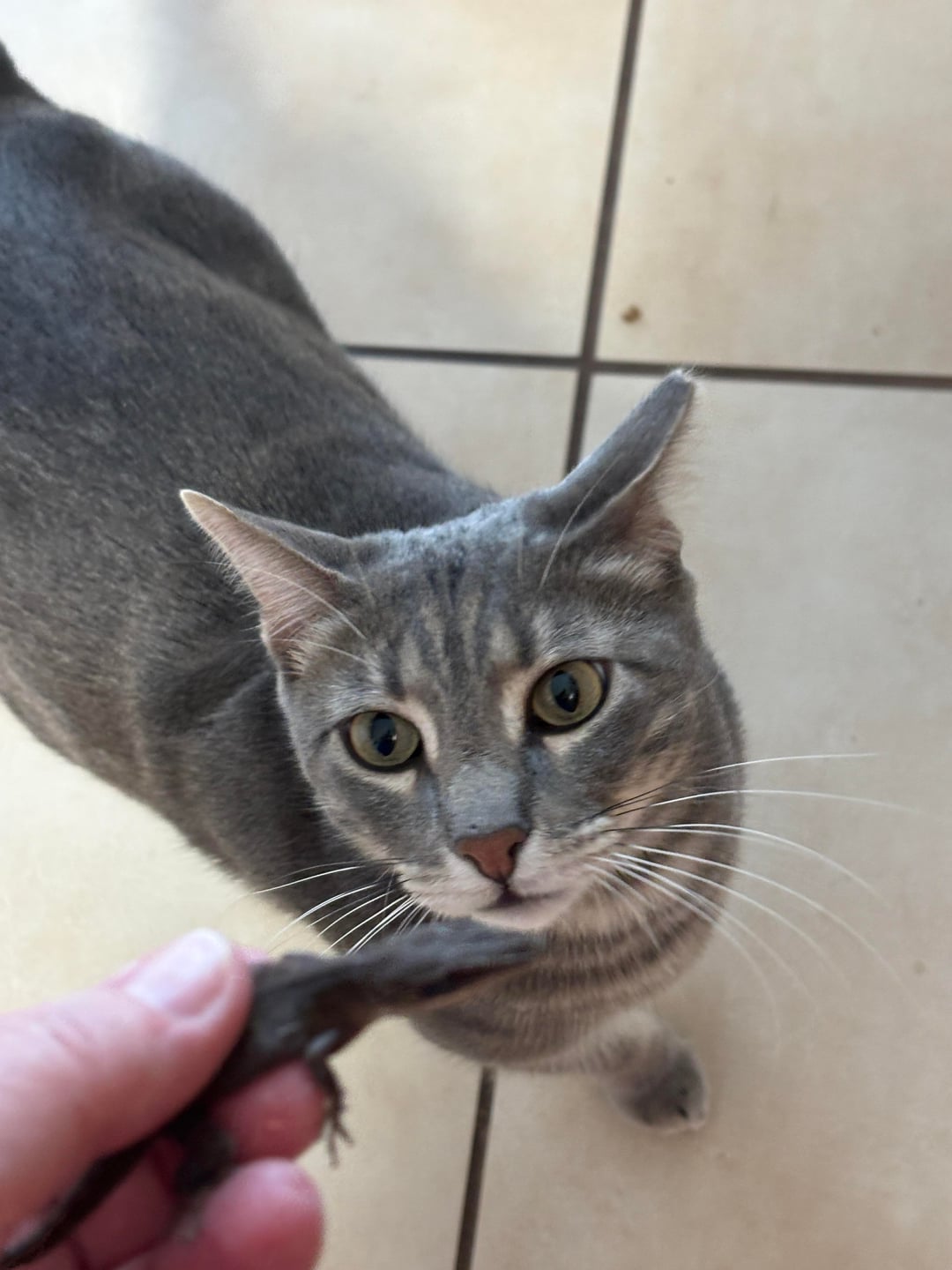 Cosmo we appreciate your contribution to the family, but we don’t eat lizards 🙅‍♀️