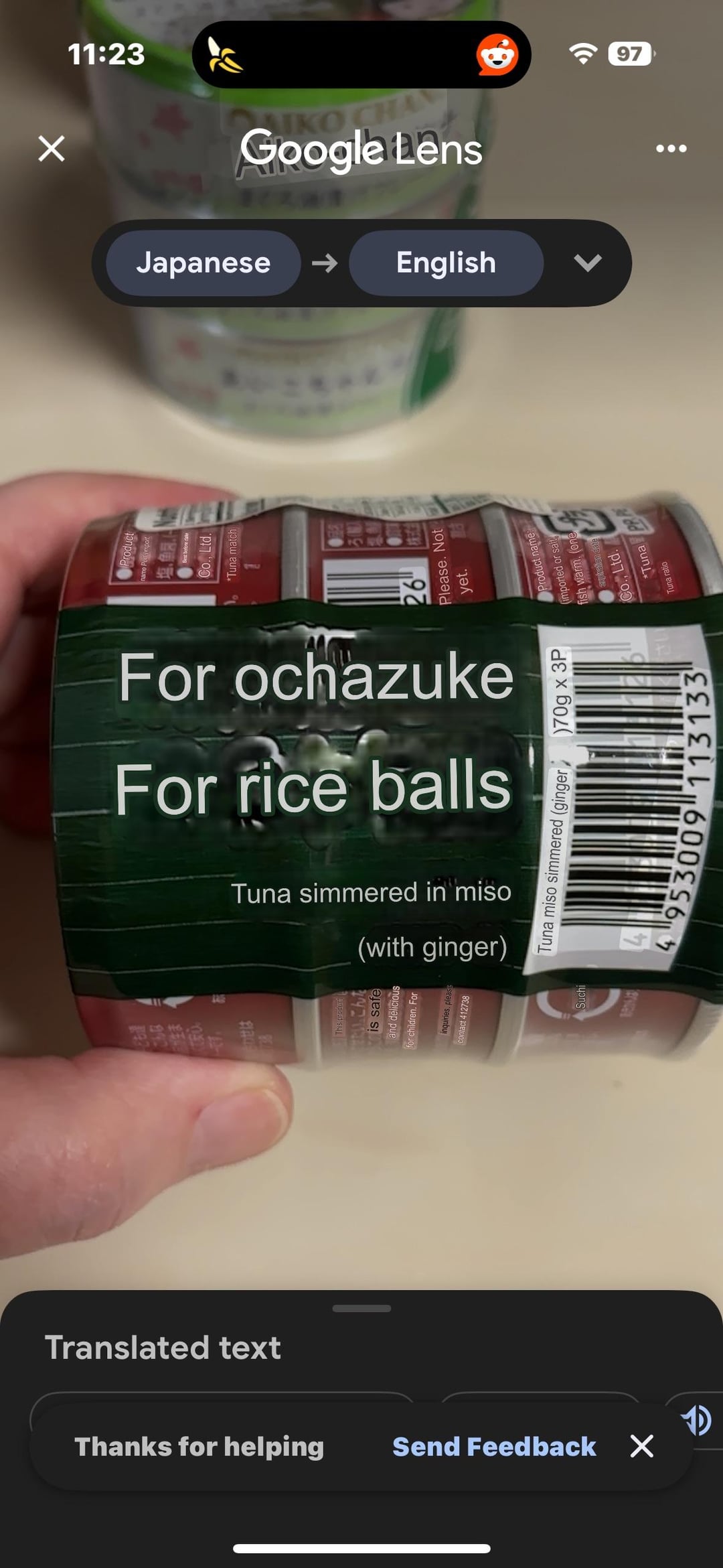 (1-3) The tin – and a direction for the meal revealed by Google Translate: Tuna with ginger and miso for Ochizuke! Okayyyyy