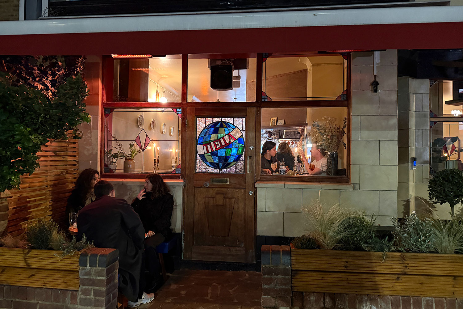 Look out for the rather lovely stained glass Tiella sign on the door…