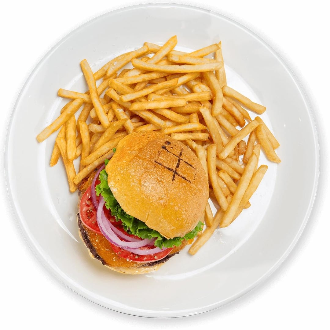 I’d say that the burger is somewhere between 750-900 calories, fries are probably somewhere between 350 and 400 calories. All in all, I would estimate this whole meal somewhere between 1100-1300 calories.