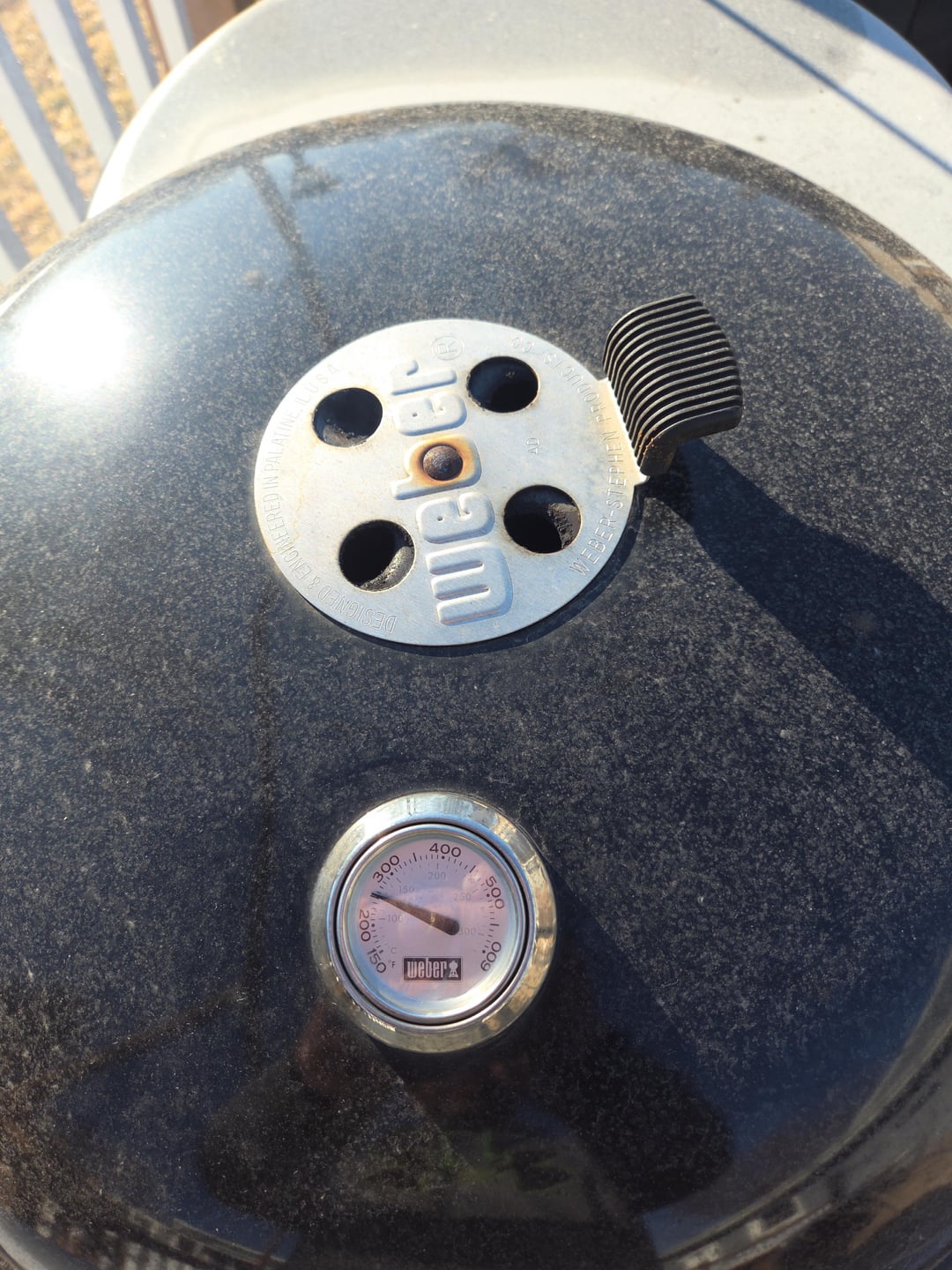 My kettle. Started of with the masters touch i found on FB for $50 that was basically new, then found this one for $75. Sold the masters touch for $100. Love grilling and smoking on it. I find the 2×2 with 1 row of charcoal on top snake method works best for me with lump wood for smoke