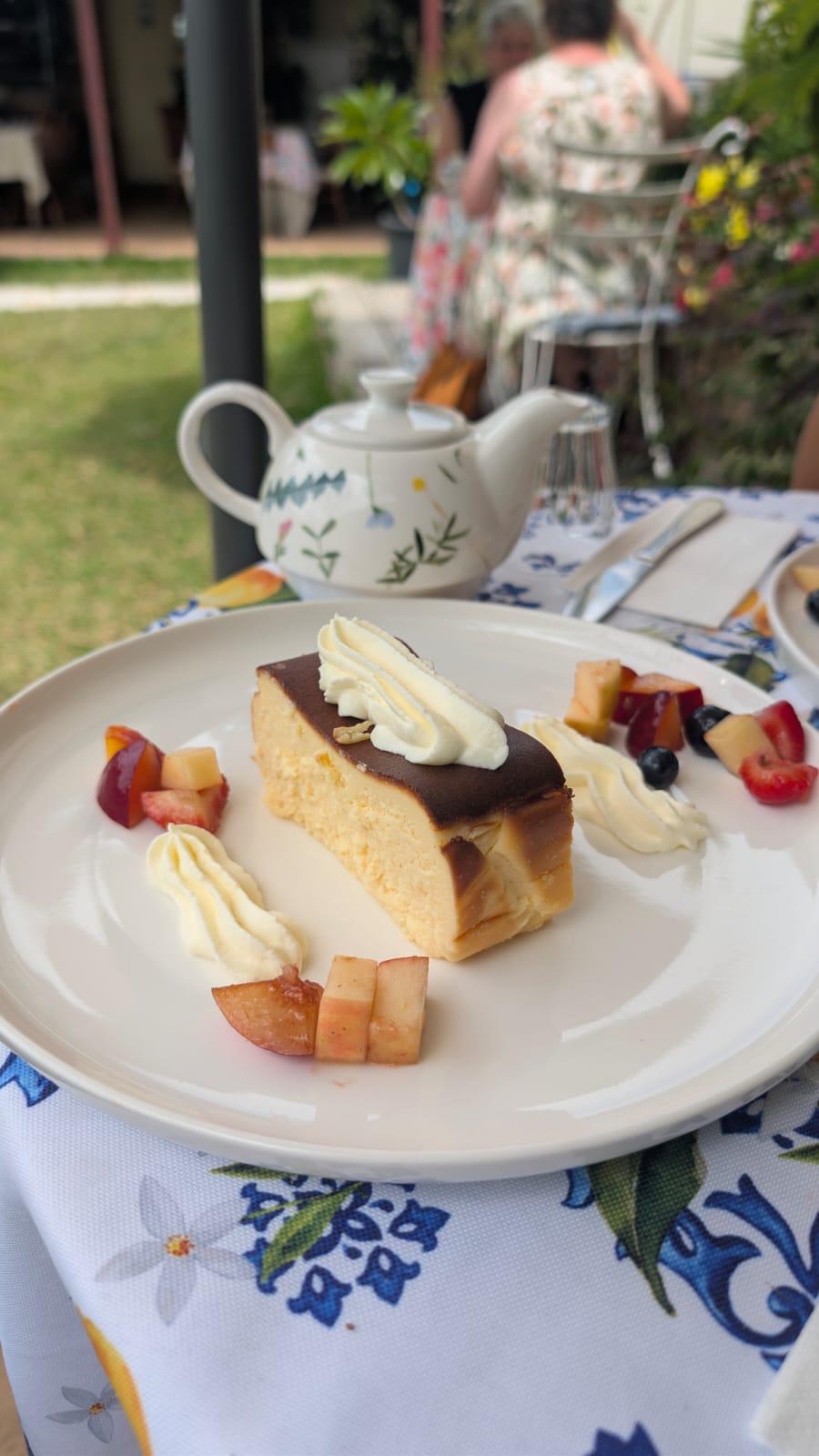 Looks like a nice burnt or basque cheesecake. The fruits are very unnecessary though.