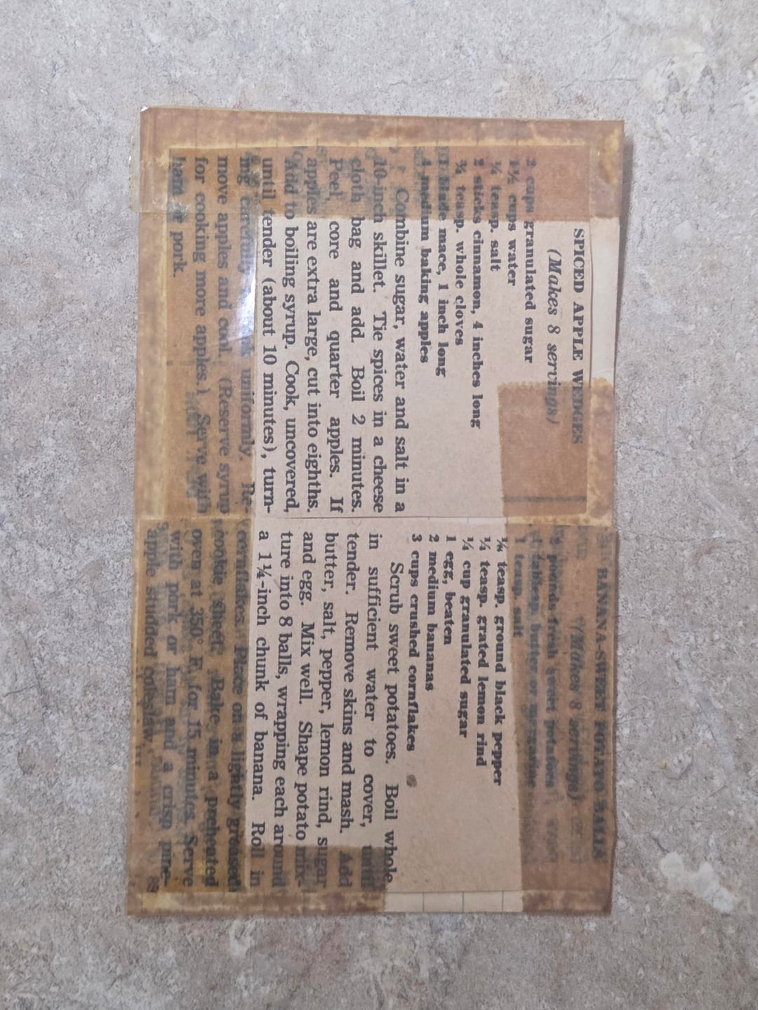 As a recap, My wife and I found a box of old recipes in an old farm house we moved into. Some of them were insane, so we decided to cook one or two recipes per week until we get through the entire box. We will do every one, regardless of how bad we think it will be and we will follow the recipe as closely as we can within reason although we may scale it down to avoid food waste.