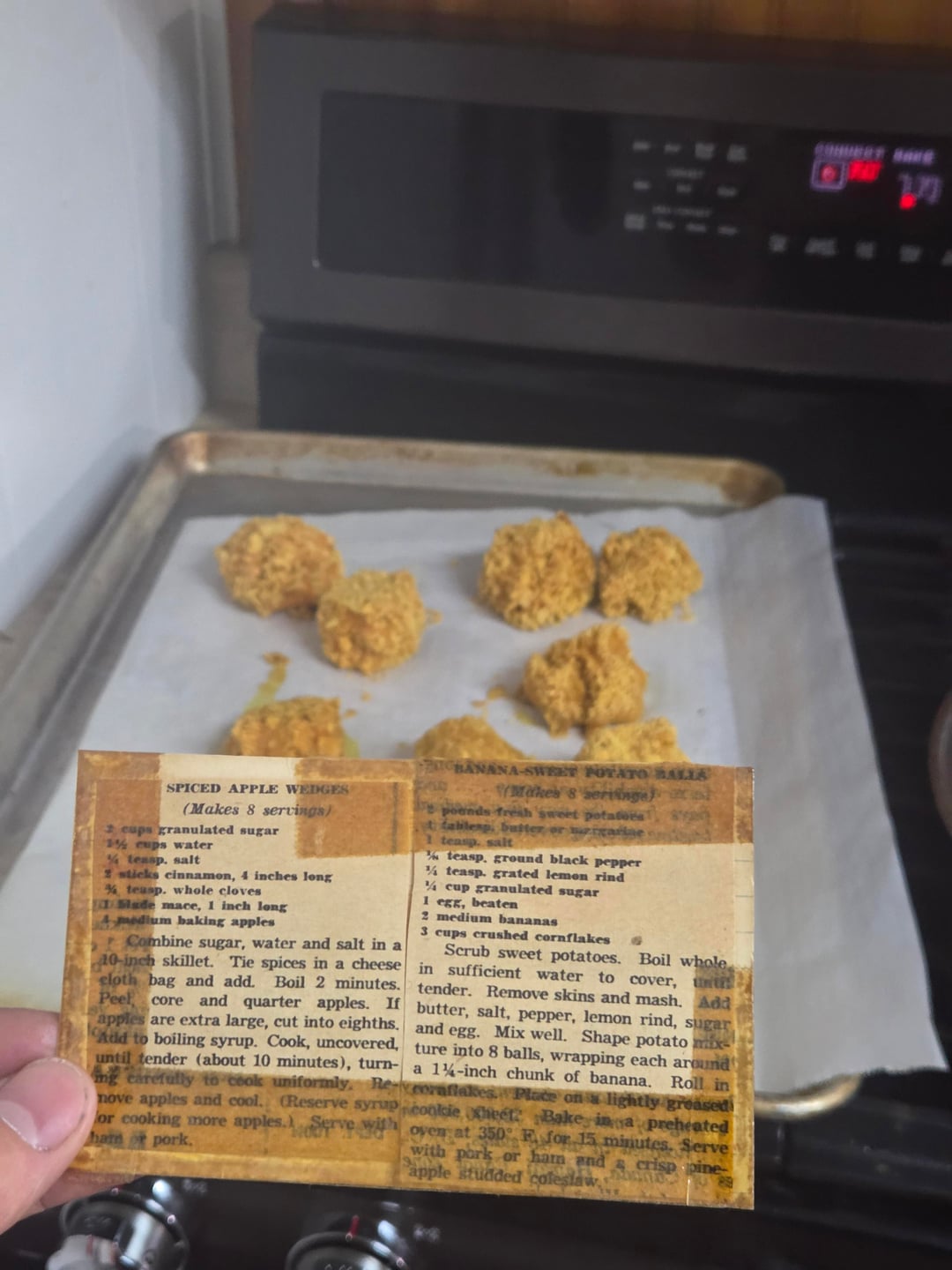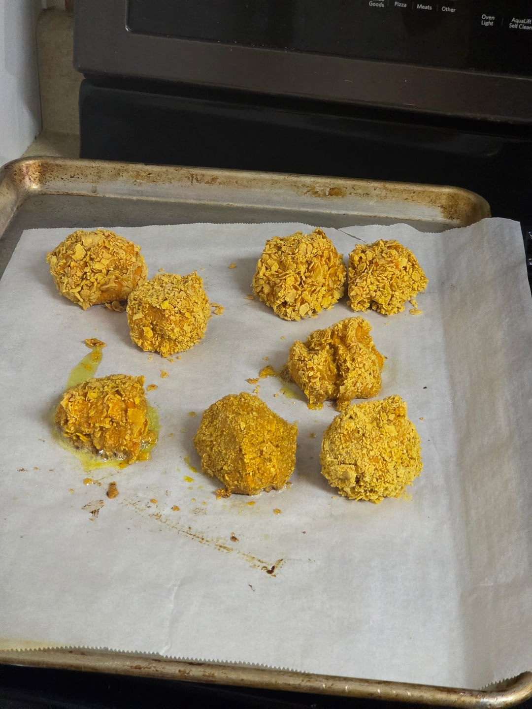 Following the recipe directly led to the flavor described above. I also made versions with no banana, versions with the cornflakes incorporated into the mashed potato balls, and versions with olive oil drizzled over them.