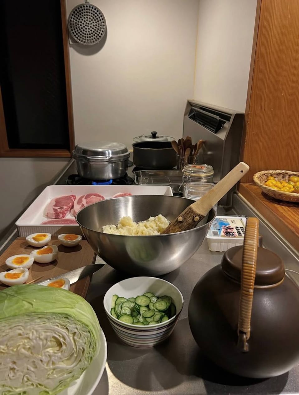 Let me just whip some egg salad, some chicken salad, and some Katsu. Basically makes itself.