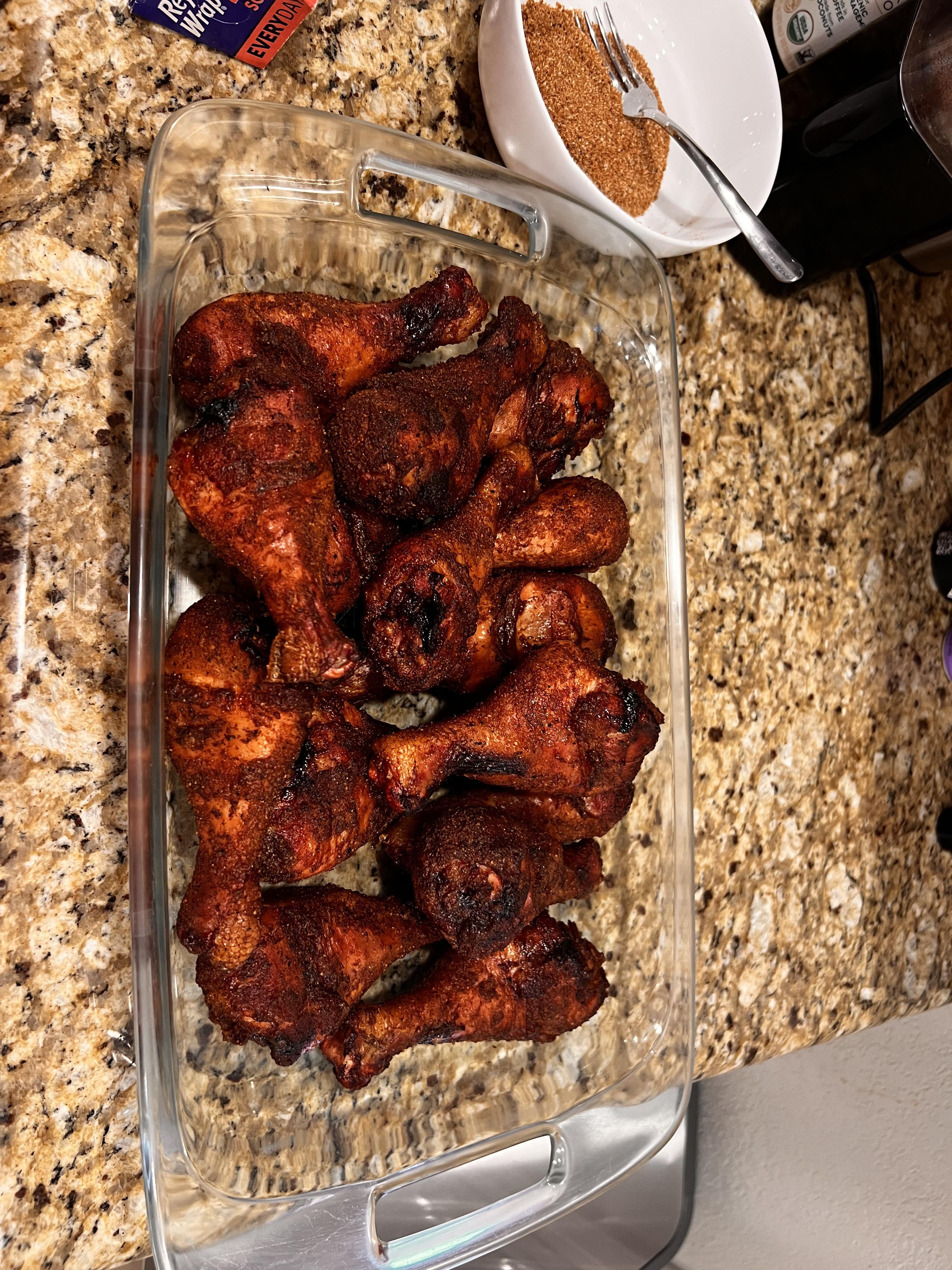 Look great, skin looks nice and crunchy. I enjoy smoked wings, legs and thighs. But I hate skin that is like leather or rubber. Well done!