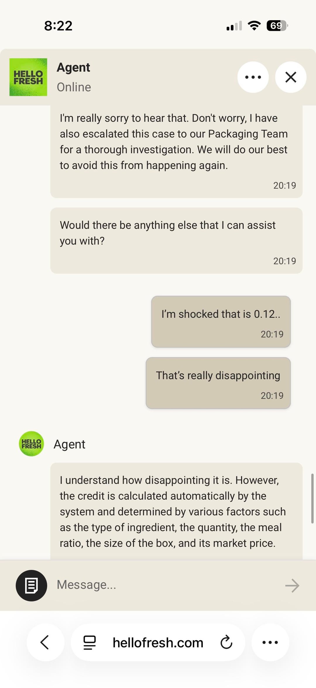 Next time, I’d just word it differently. If you say the whole bag was compromised and you couldn’t use or cook the meal because of it, they’re more likely to issue credit for the entire meal.