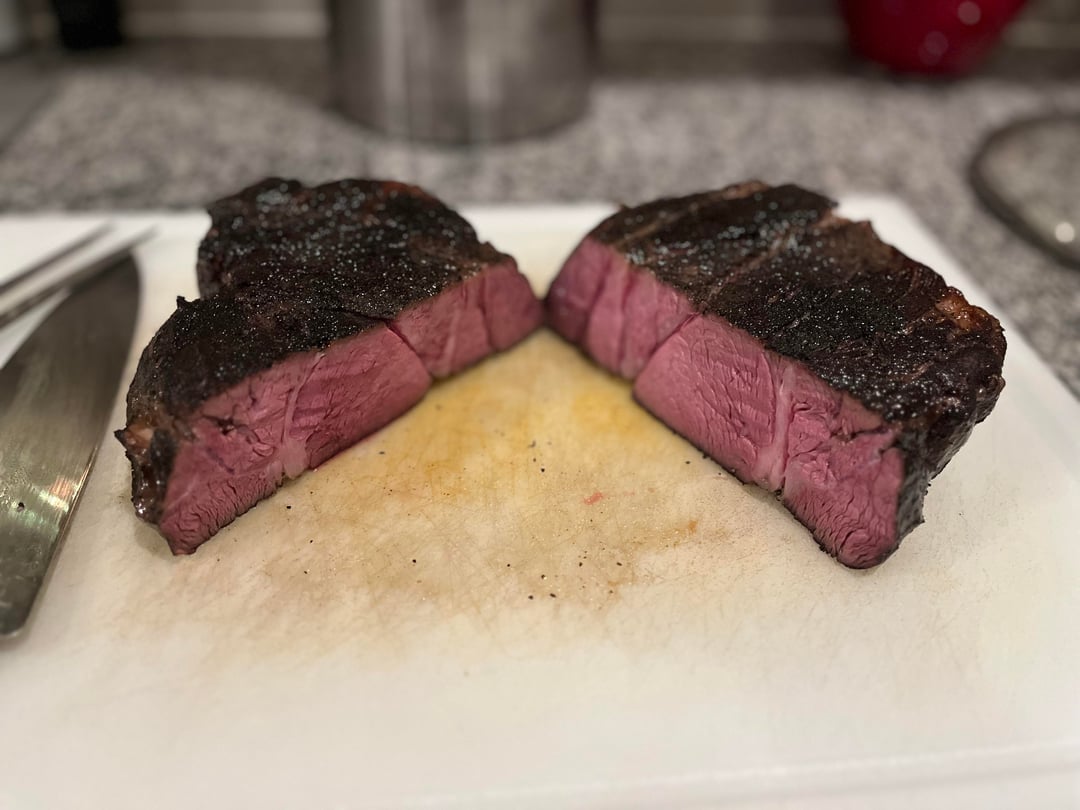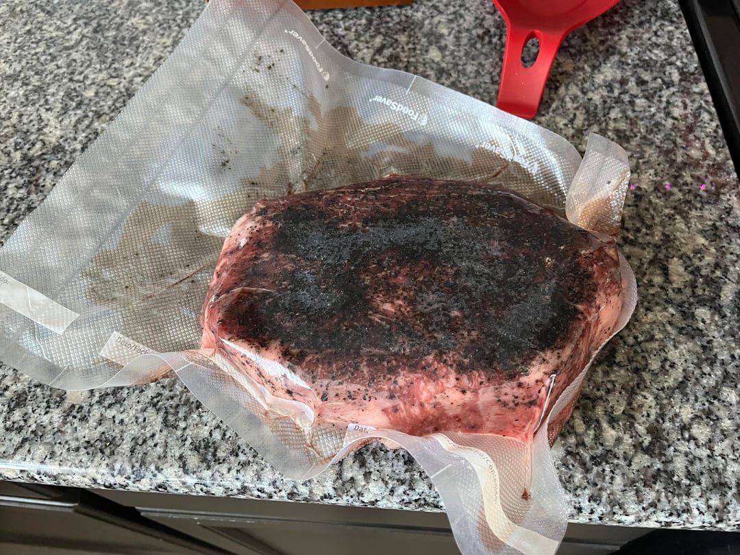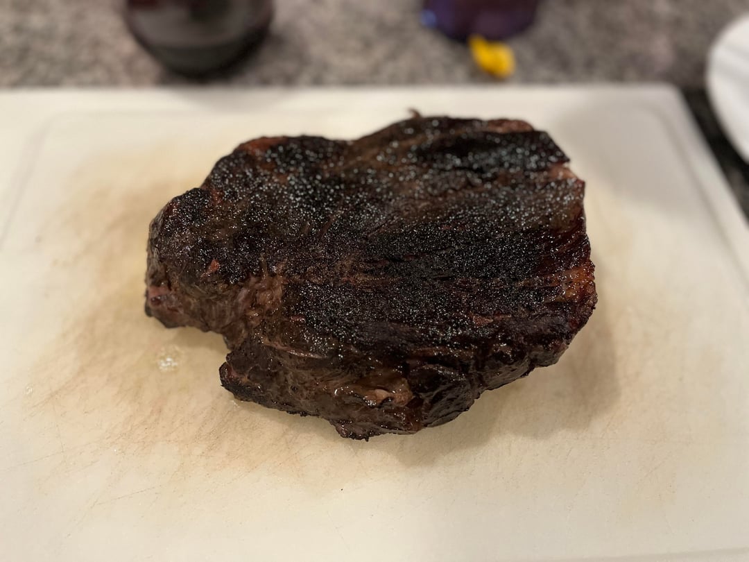 26 hr prime chuck seared on flat cast iron on gas grill. I say good day Sir (Charles).