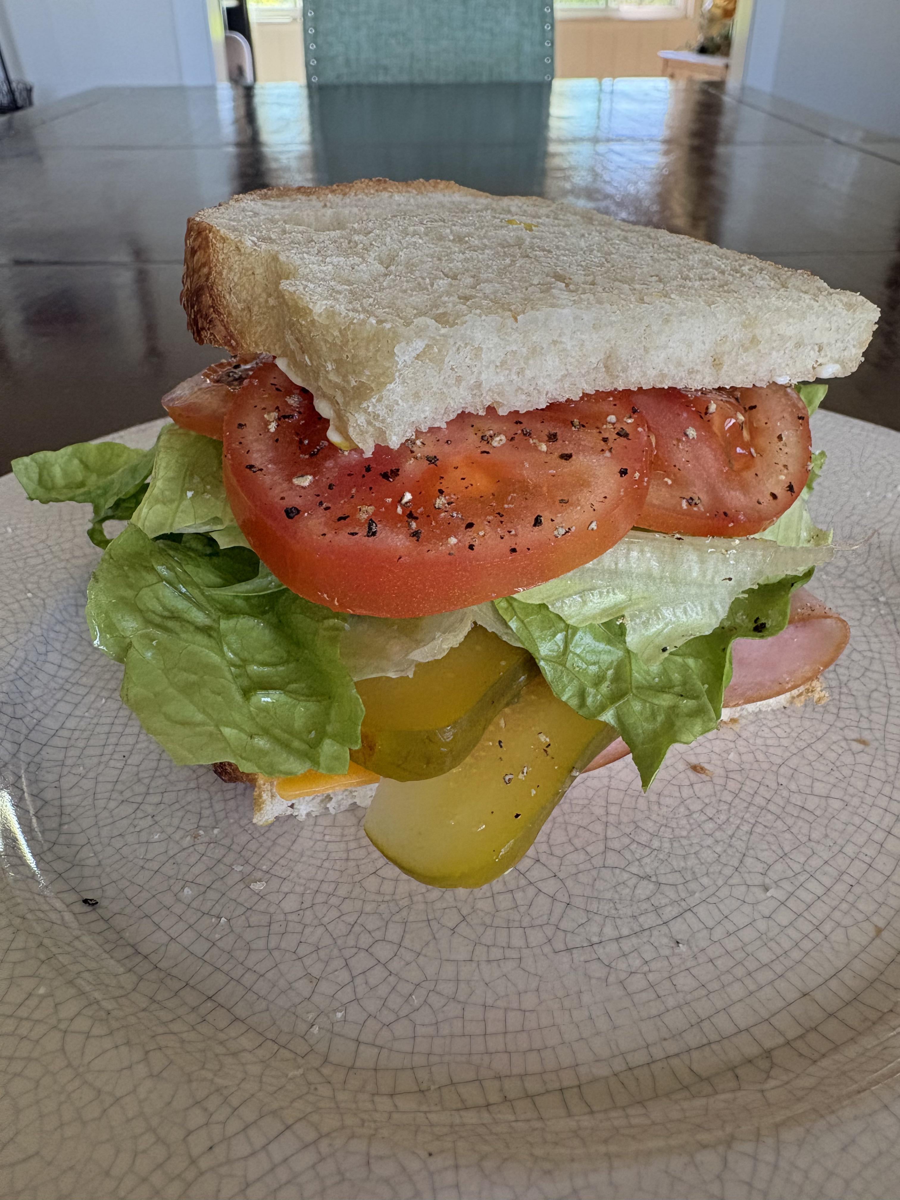 Ham and CheeseSourdough bread MayoDill Pickle MustardHoney hamCheddar cheeseLettuceTomatoSaltPepperby Shrektastic28 4 Comments pushingdaises 6 days ago Salt and pepper on the tomatoes is always a must 👌🏼 YunaBell0202 6 days ago pretty solid looking. Good stuff op ;p Cyber-X1 6 days ago Are you sure there’s ham and cheese on there? j/k 🙂 bloopdad 6 days ago I bet your belly feels great after eating that. Looks so fresh.