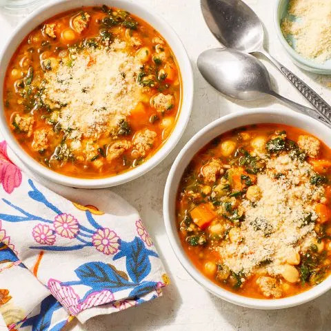 Soup season is coming up quickly, making it the perfect time to try one of these fall recipes! These dishes are packed with veggies like cabbage, sweet potatoes, carrots and kale to help you savor the flavors of the season. Plus, each recipe aligns with the Mediterranean diet and is full of other delicious, nutrient-dense foods like legumes and whole grains. Try options like our French Onion Cabbage Soup or our Chicken Parmesan Soup for a cozy meal that tastes like fall in a bowl.