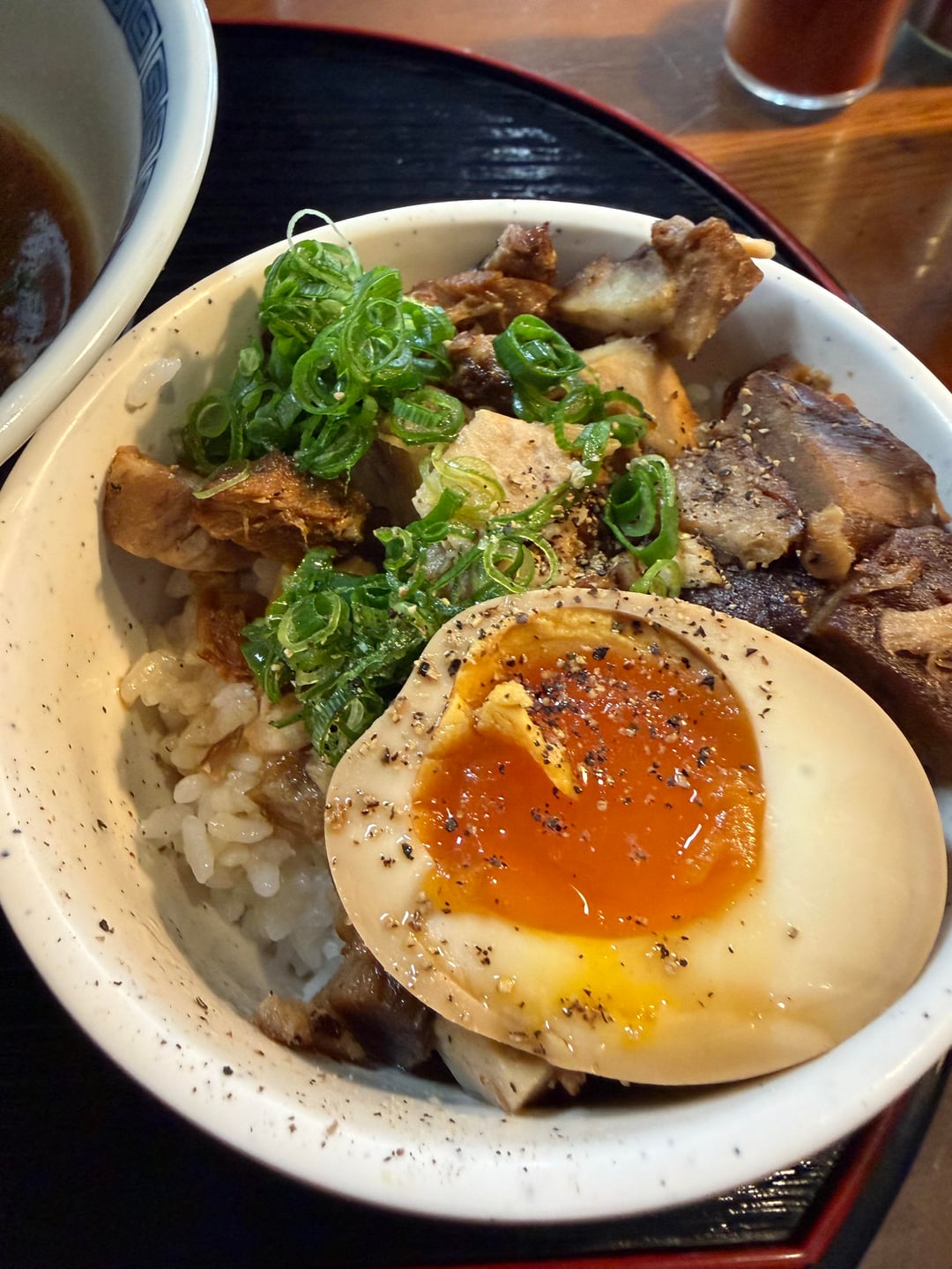Finely chopped green onions in my ramen and chashu bowl. My girlfriend wouldn’t try it. I told her to just pick it out but she said the “onion flavor has already fused in.