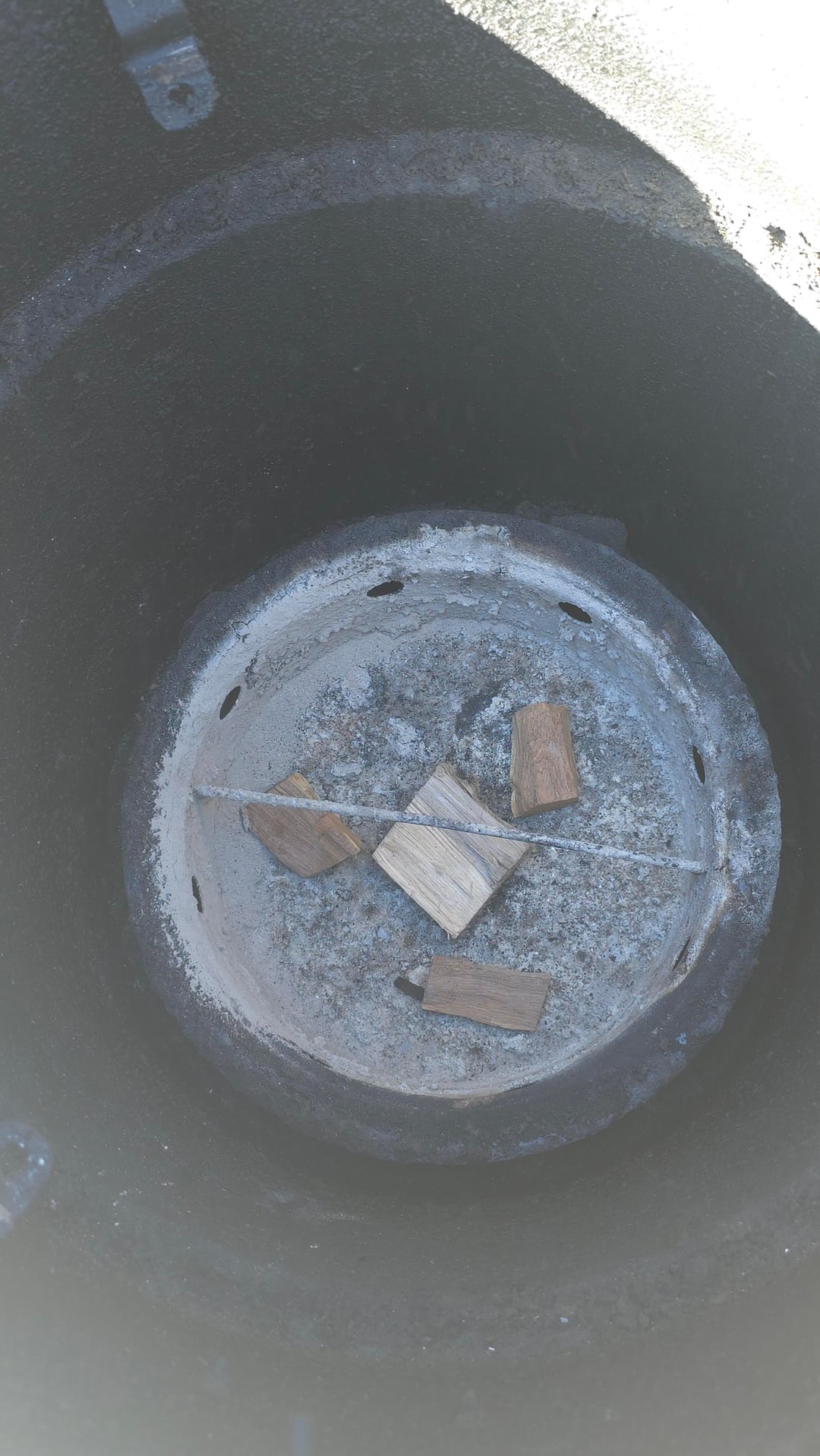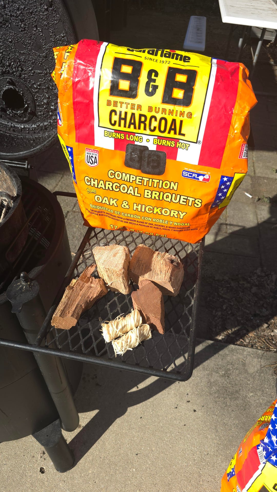 I cooked it on an Oklahoma Joe Bronco drum smoker in about 25°F Chicago weather. For fuel I used B&B briquettes (post oak, hickory) and hickory, mesquite wood chunks for smoke. I did minimal trimming the brisket myself beforehand, removing most of the hard deckle fat and trying to leave about a ¼ inch fat cap while rounding the edges a bit for better airflow.