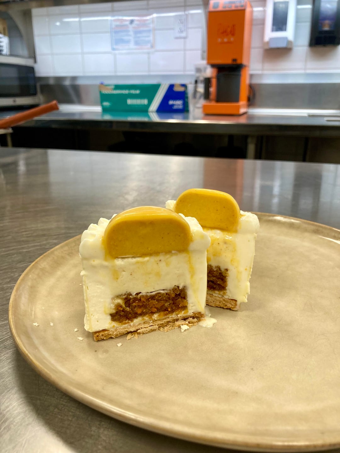 Carrot cake cremoux/ yogurt mousse/ spiced NY cheesecake/ carrot cake/ Graham sable