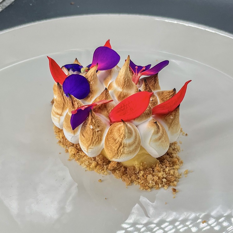 Hero image: Elegant harmony of flame‑kissed meringue, citrus, and edible petals on a golden crumble. © Restoran 27