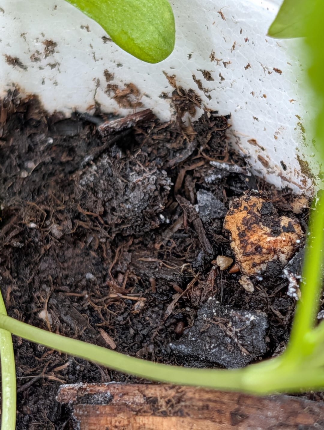 White on the soil. Concerning? Solutions? There are also small flies