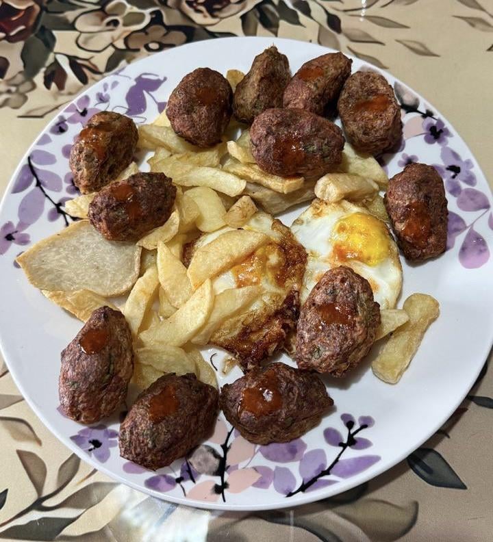 Traditional homemade food from Cyprus 🇨🇾. Keftedes (Cypriot meatballs) served with fries and crispy fried potato slices, a simple comfort meal many of us grew up eating at home.