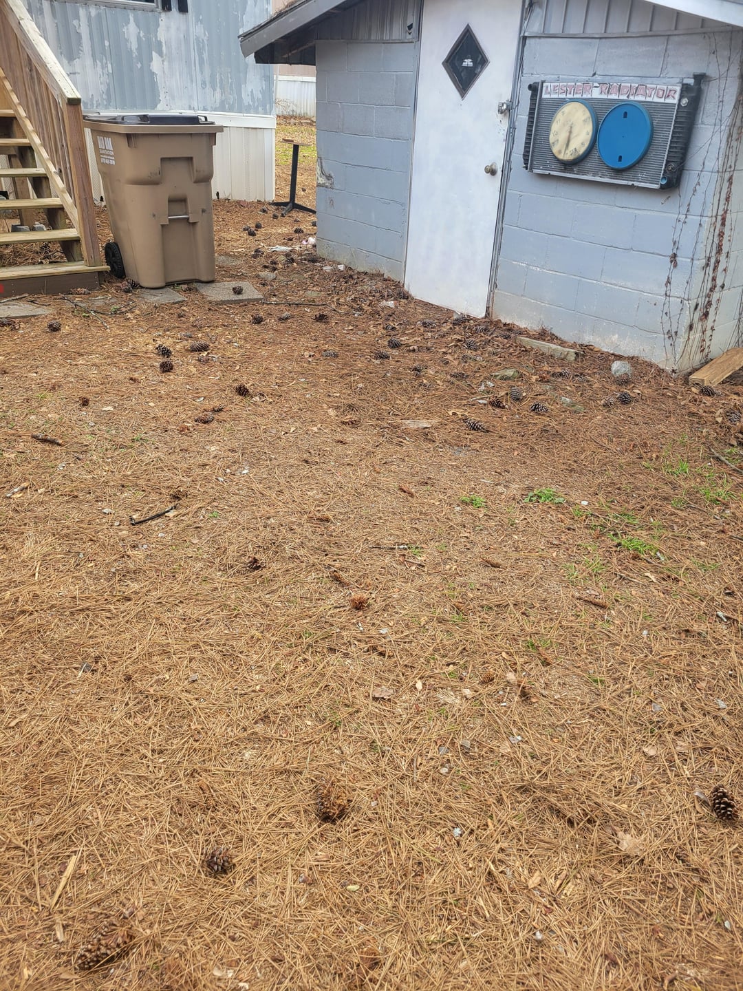 The dead pine needles will be an issue. I’d definitely rake those up first. Then you should be good to go