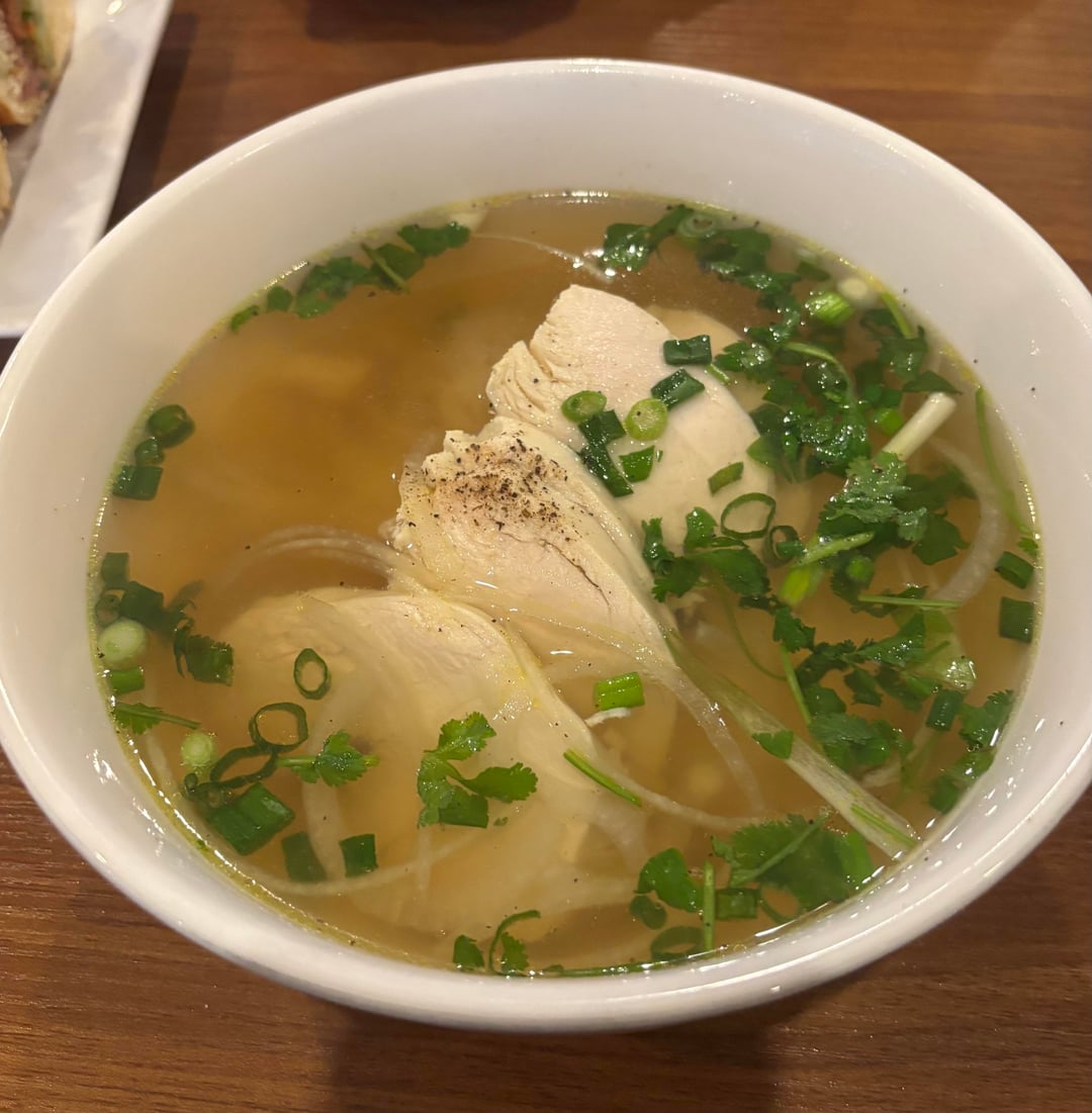 I ended up splitting both items with my boyfriend, but I’m still curious about the amount of calories as a whole. I’ve included a picture of the pho with and without additional toppings. It’s hard to see since the bowl is so deep but there was 8 or so slices of chicken in total, and I would guess around 2 cups of rice noodles? The contents of the banh mi was carrots, cucumber, onion, cilantro, and mayo but for meat we went with grilled pork (the veggies far outweighed the meat if that helps at all). Loved this place and i’m already planning on going back tomorrow so would appreciate any guesses!!