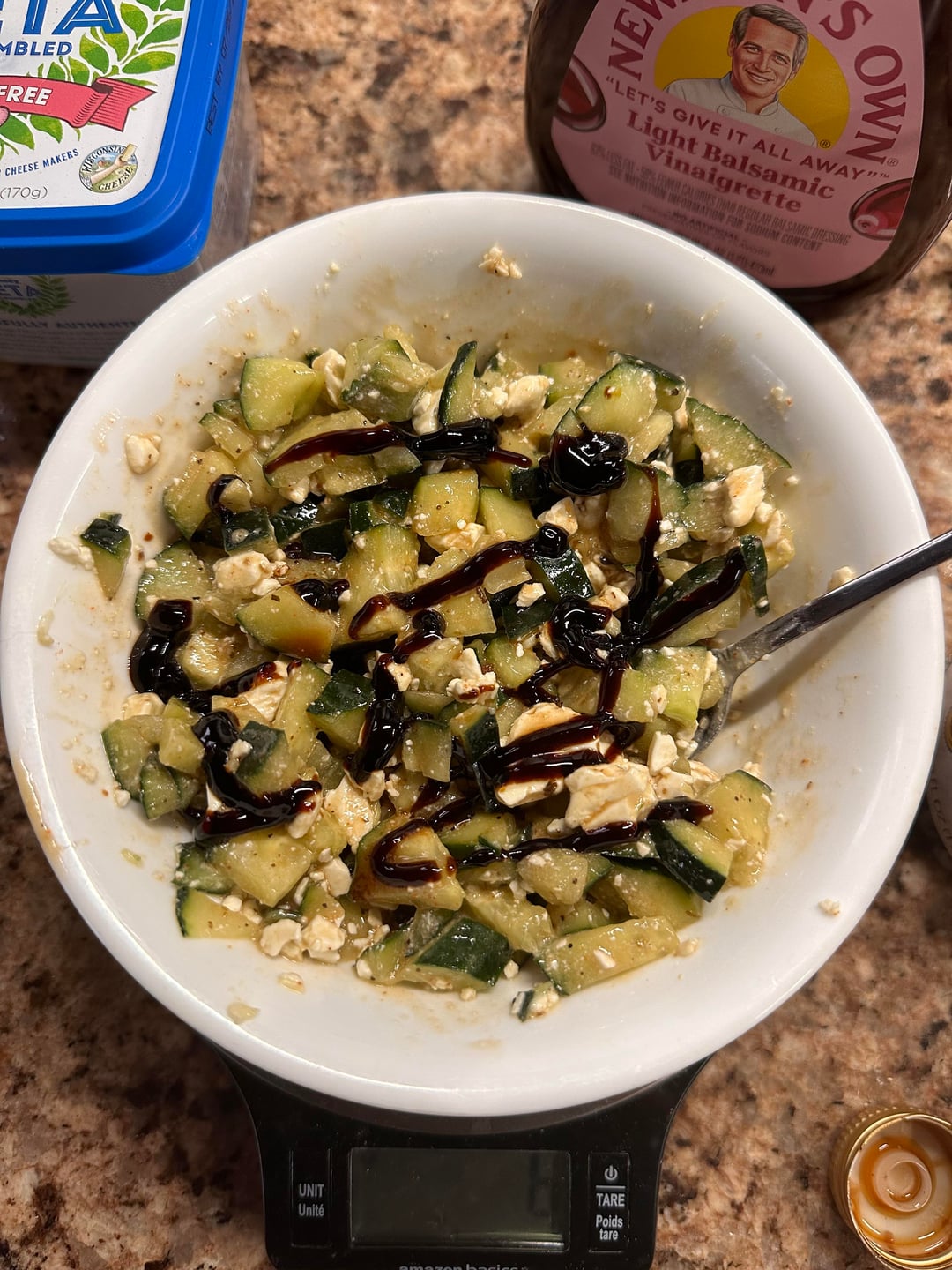 2nd pic: cucumbers, feta cheese, balsamic dressing, & vinaigrette