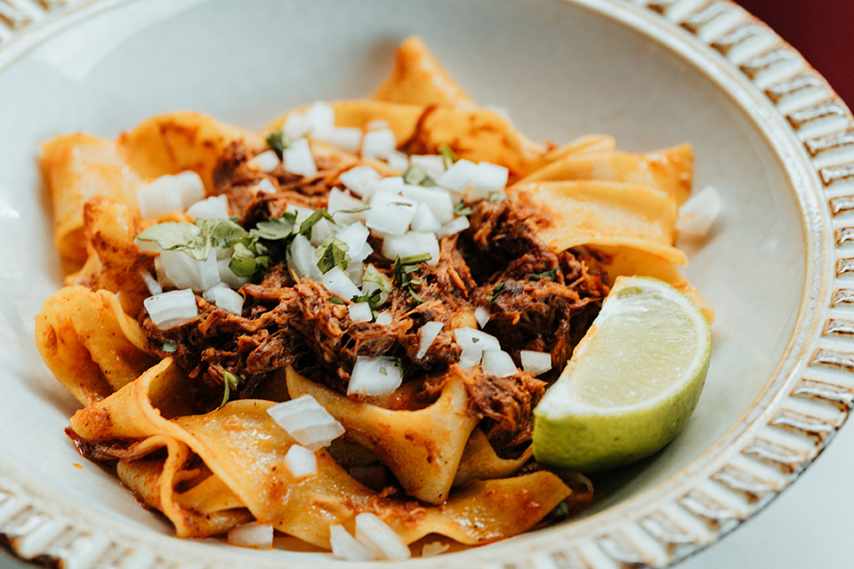 “Pasta is my favorite food,” says Kishinchand, who makes his pastas in-house daily. “It’s such a blank canvas and you can do so much with it. Every culture has a version of a noodle.”