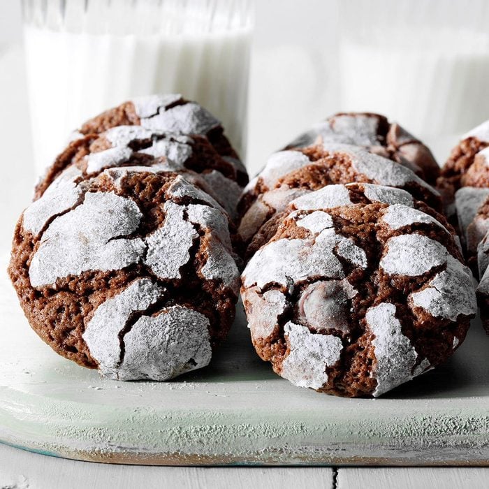 When I baked this moist, fudgy chocolate crinkle cookie recipe for the first time, my three preschool children went wild over them! But I like them because they’re lower in fat and easy to mix and bake. —Maria Groff, Ephrata, Pennsylvania