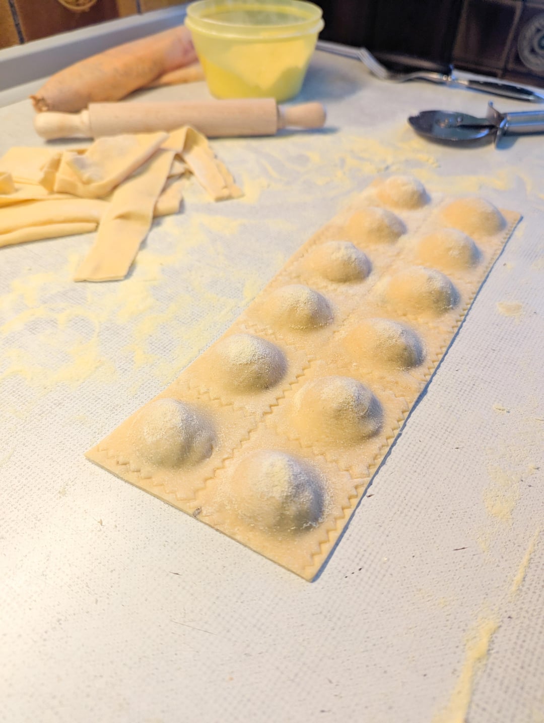 Homemade Ravioli with a filling of salsiccia (also homemade) and ricotta. Served with sage butter and 60 months old parmesanby krumbuckl 3 Comments Fuzzy_Welcome8348 2 months ago  Striking-Teach7489 2 months ago Looks yum 👍 Nerdgirl921 2 months ago So what time we eating. That looks amazing.