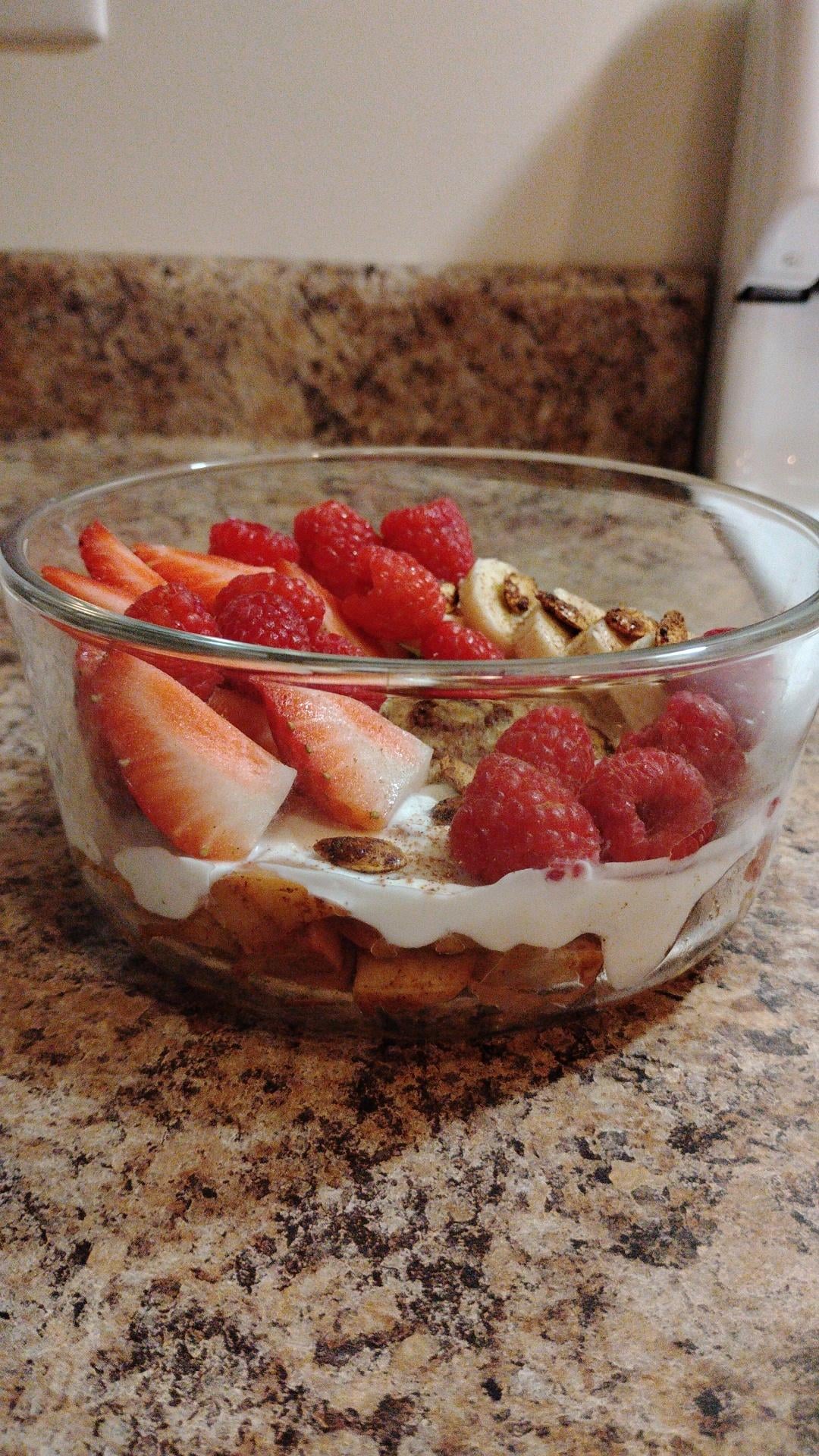 stewed apples on the bottom, homemade low cal cinnamon roll, some roasted spaghetti squash seedsby chickpealuvr420 4 Comments milkyespressolion 4 days ago oooh how did u make the cinnamon roll ?? i’d love a recipe Shoddy_Relative2830 4 days ago A feast for the eyes! InstrumentKisser_2 4 days ago the mini cinnamon roll is such a good idea…. Madwoman-of-Chaillot 4 days ago That fruit is nowhere near “starting to go.”