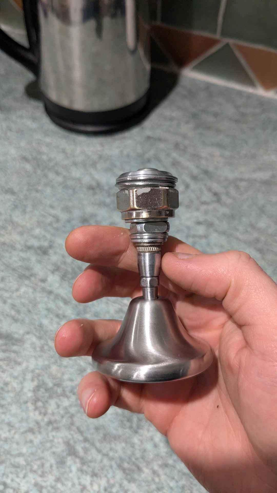 I made a tamper from nuts and bolts I found around the house and a spare pot lid I had. Pretty happy with it other that the weight. The lid is hollow unfortunately, I'm contemplating filling that coffee for a little more weight.