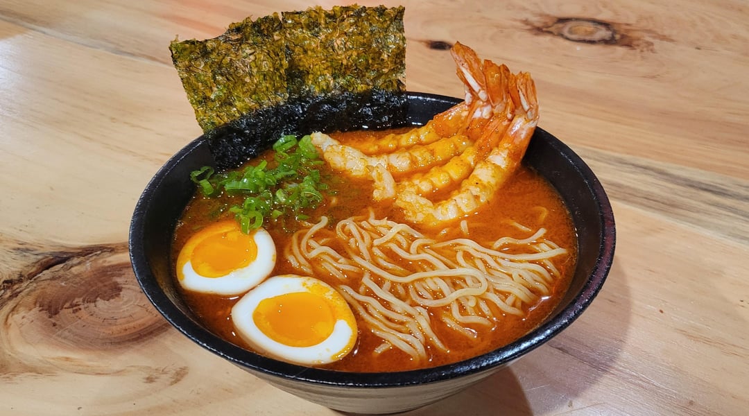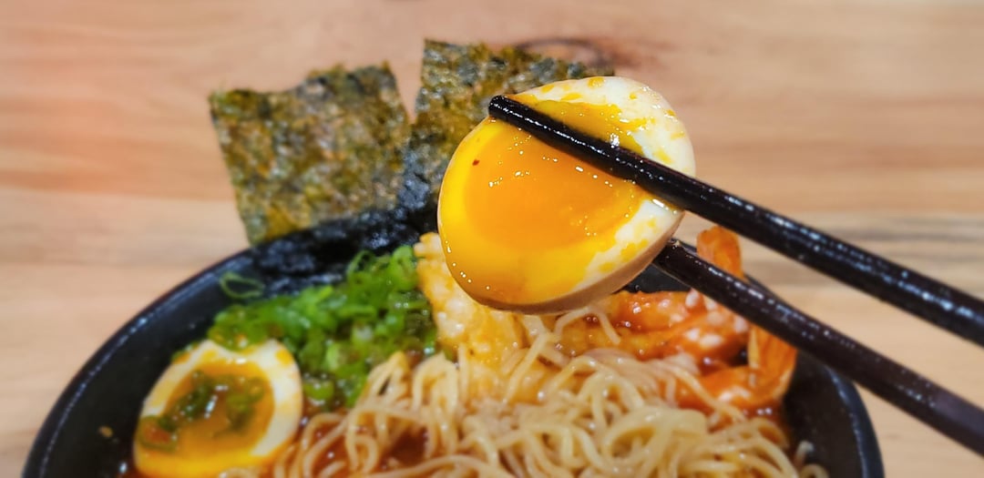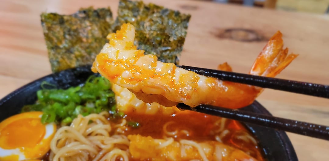 Jumbo shrimp sale, wanted to try a quick after-work ramen experiment. Pressure cooker spare chicken parts stock combined with a quick shrimp stock made with the shells. Marinated eggs and some leftover fresh-frozen noodles. Simple tare with grated garlic and chili crisp. Nice amount of aroma oil. Worked out well, will improve when I have some weekend time.