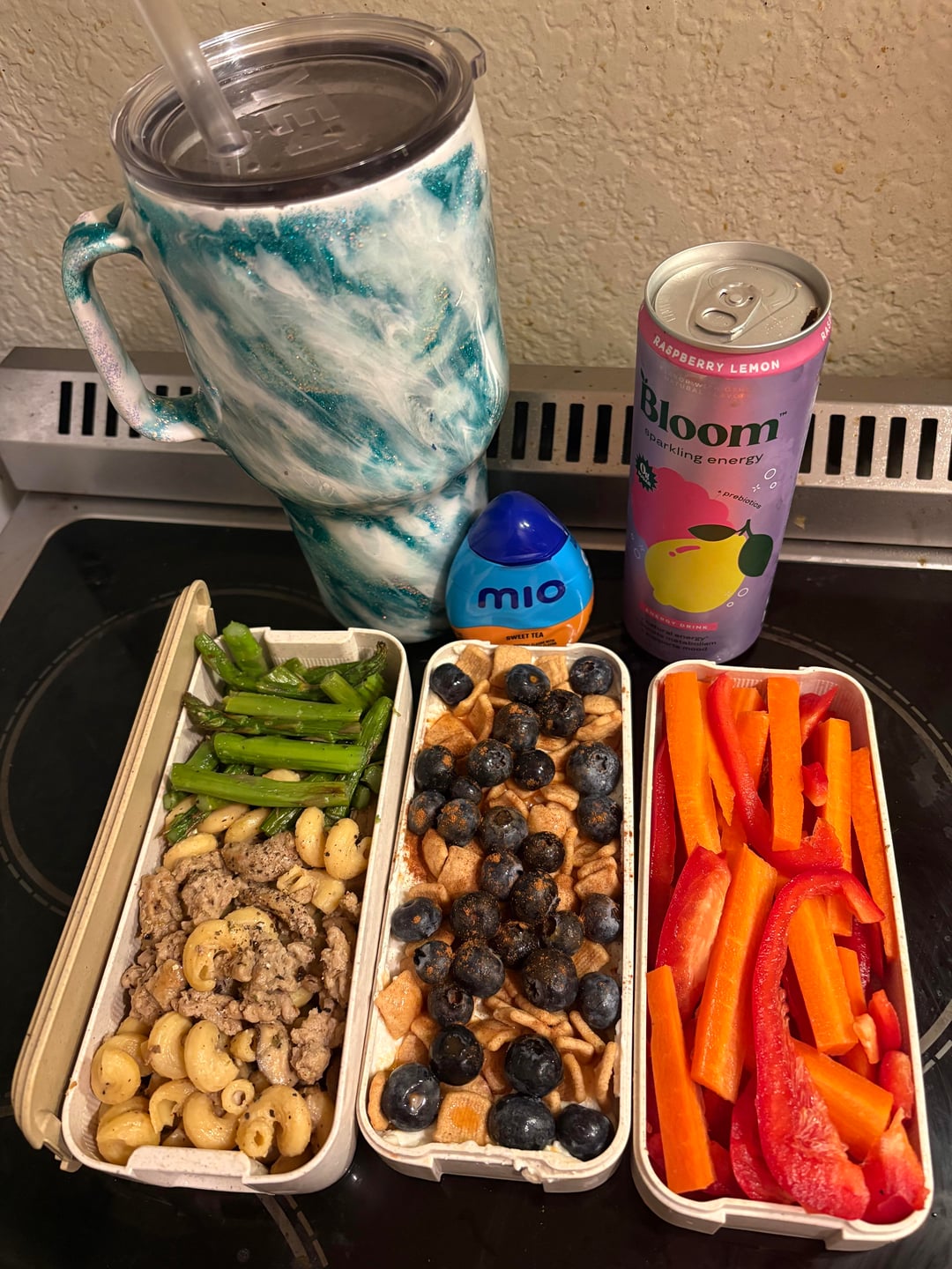 Drinks: bloom energy, mio sweet tea