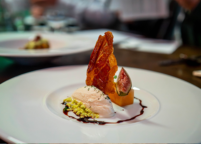 Kayla’s winning dish combined compressed cantaloupe melon, fig syrup, prosciutto ice cream, aged balsamic, roast figs, fig oil, fig maltodextrin crumb, and aged balsamic caviar.