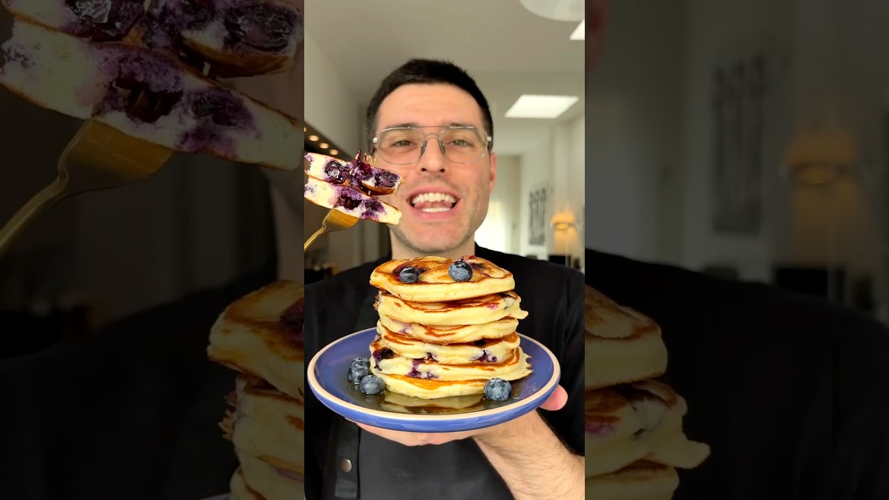 The Greek yogurt is the secret weapon — it gives you that ultra-soft, almost creamy crumb while still being properly cooked and fluffy. Think classic fluffy blueberry pancakes… but better.