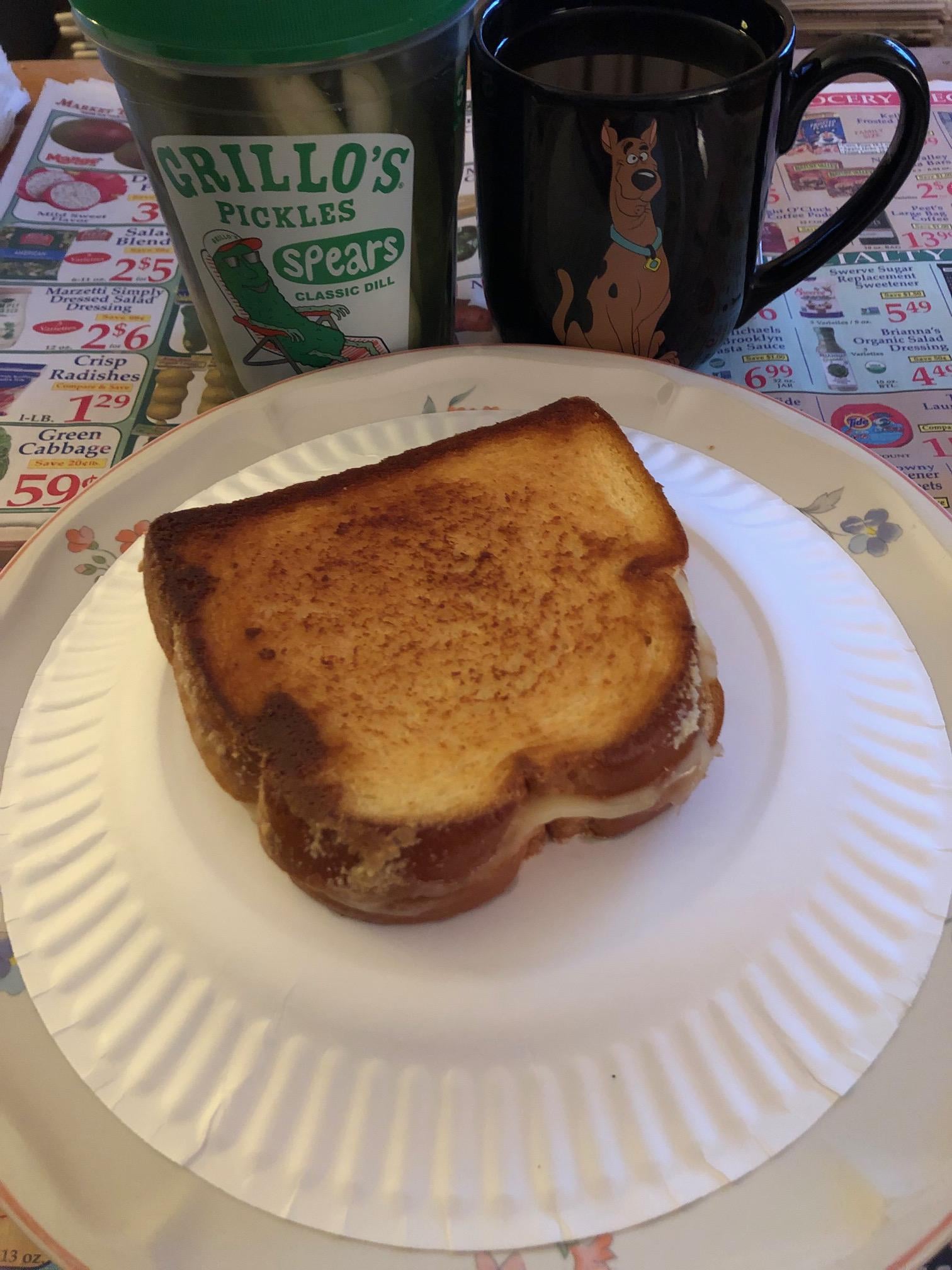 Martins potato bread, Hoffmans cheddar cheese, Truly grass fed salted butter, Grillos Pickles dill spears on the side.
