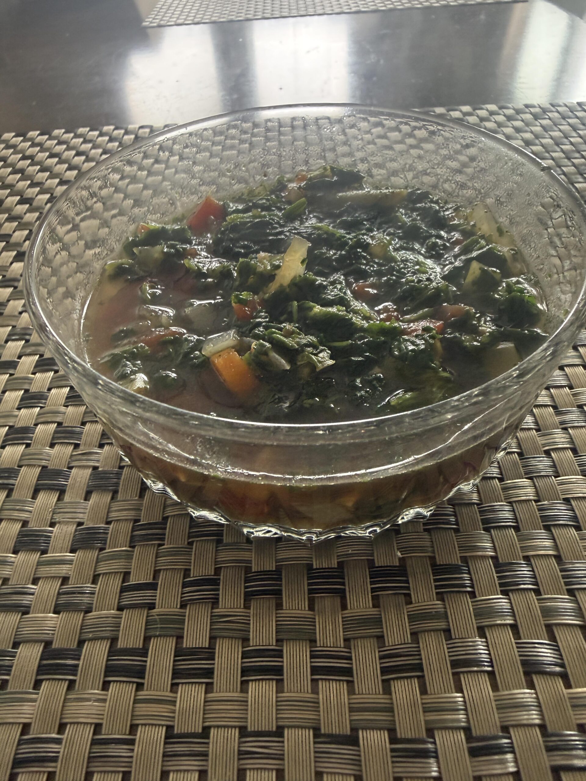 Like a lot of soups it doesn’t photograph well. This batch has frozen spinach instead of cabbage.
