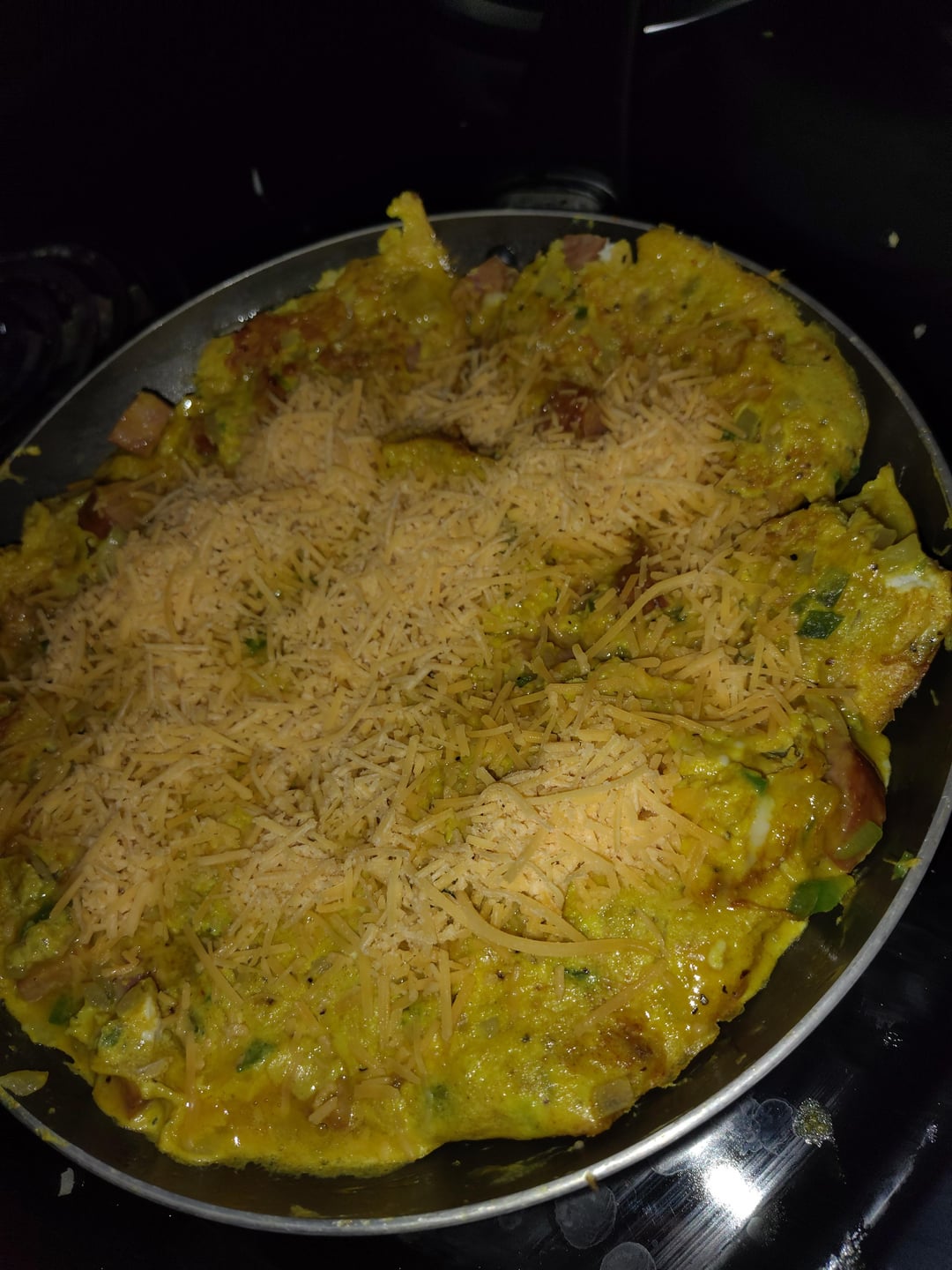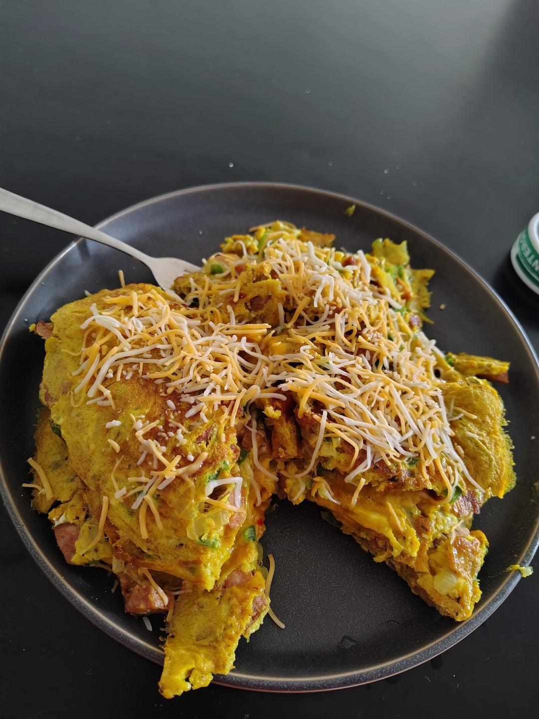 Cheddar cheese inside topped with Colby jack