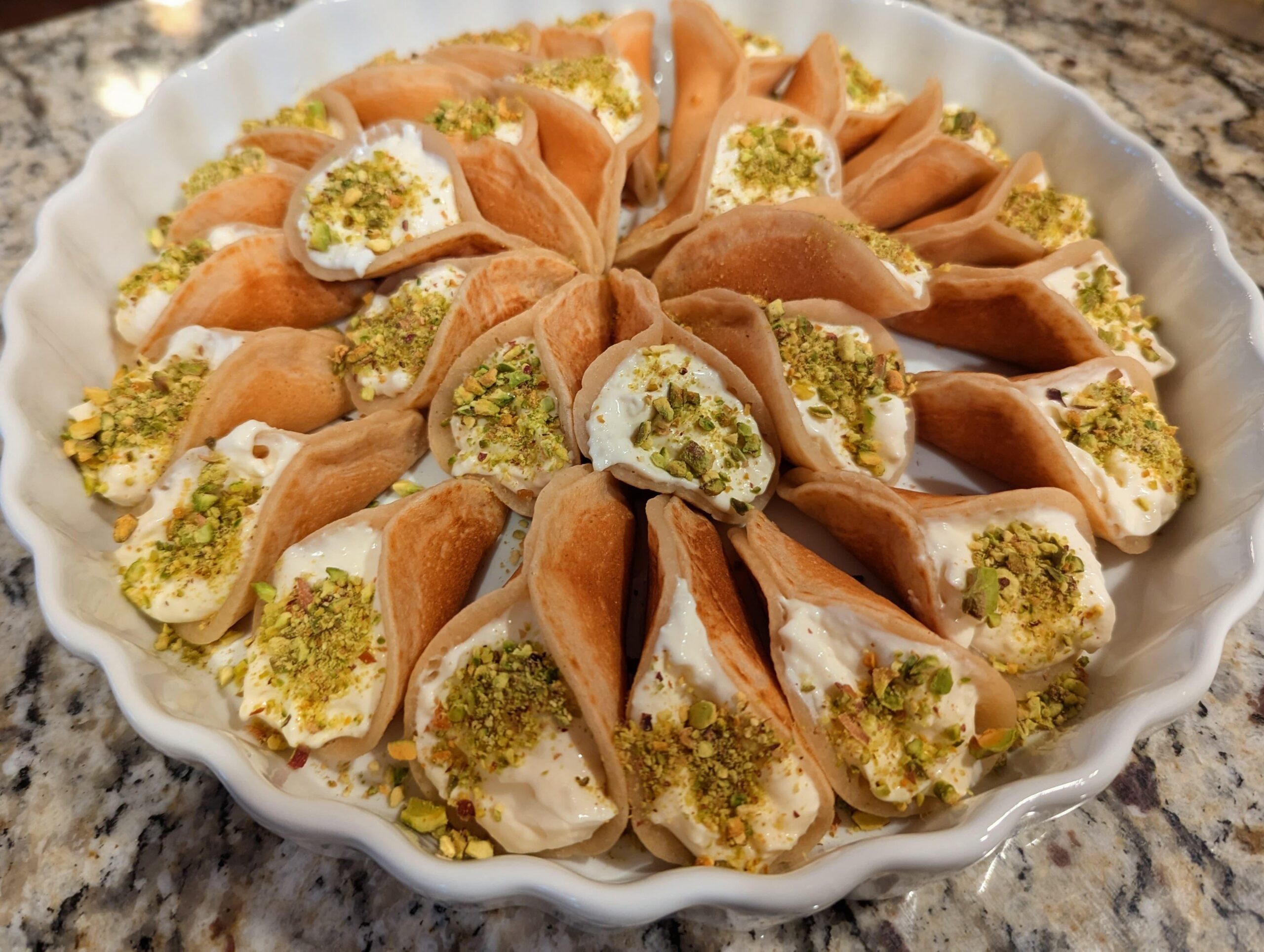 Katayefby CanYouCanACanInACan 1 Comment BRAX7ON 1 month ago I’m guessing they are like fortune cookies stuffed with Italian pastry cream rolled in pistachios.That sounds delicious