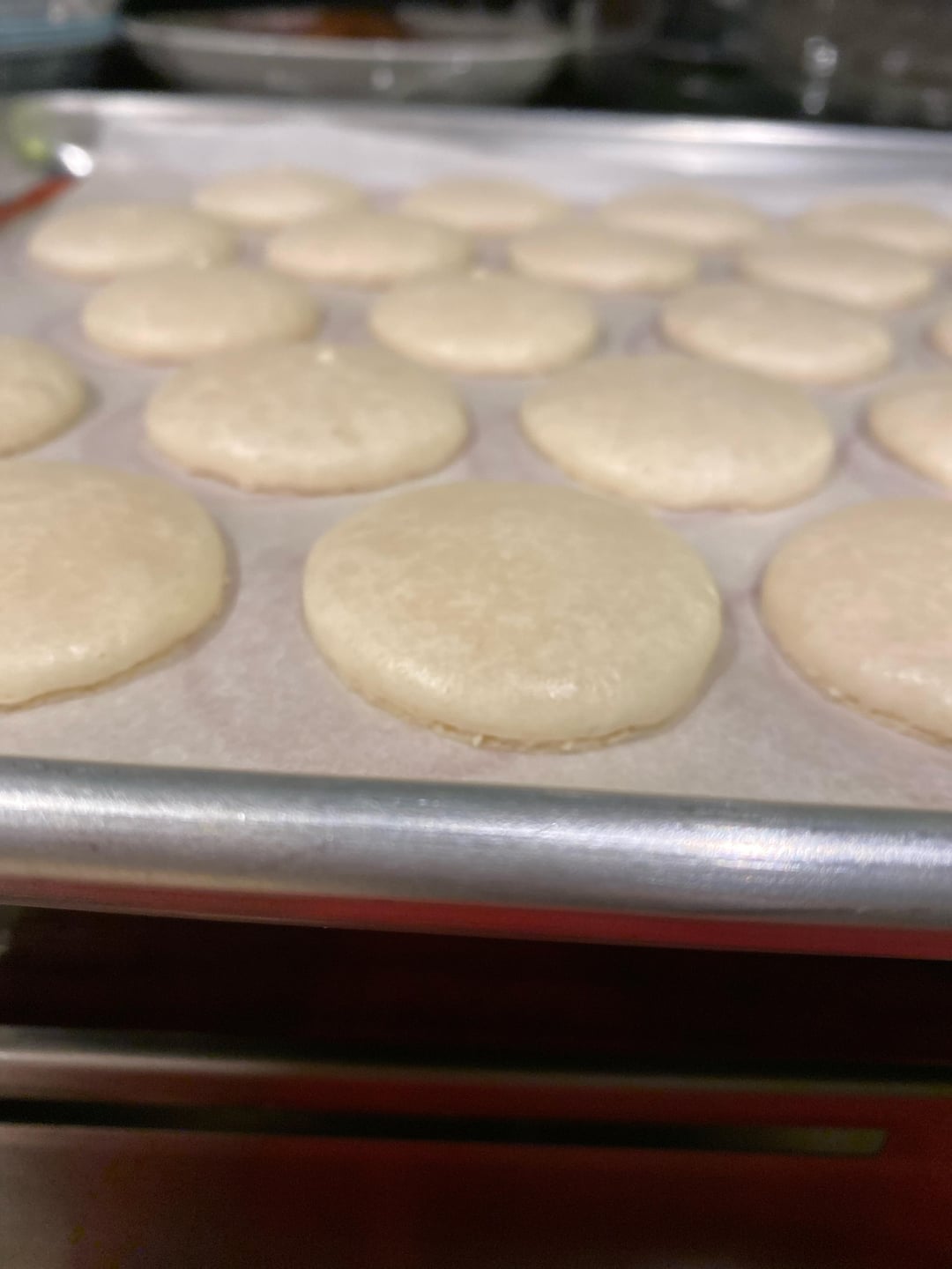 First time making macarons, they had feet in the oven and then it completely flattened. 🙁 Theres also some discoloration on top, the gel food coloring I used definitely did not show up either.by lynnquette 2 Comments Kaidalexis 2 months ago Looks like poor meringue stability which caused them to collapse when they cooled. How did the meringue look? And what recipe/style did you use? trolllante 2 months ago It looks raw… can you share how long you baked and the oven temperature?