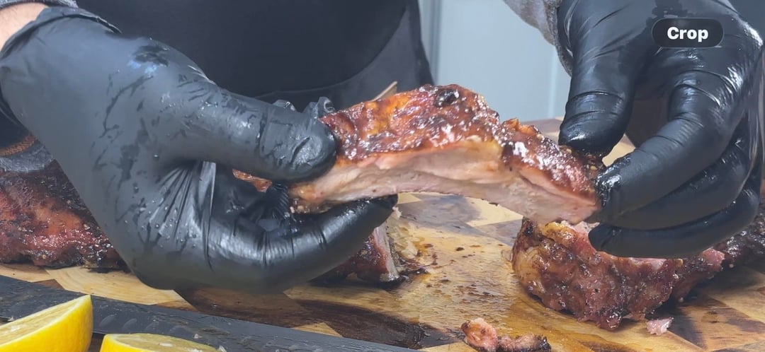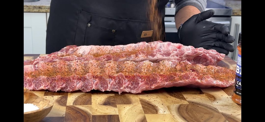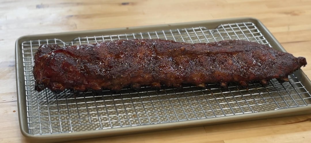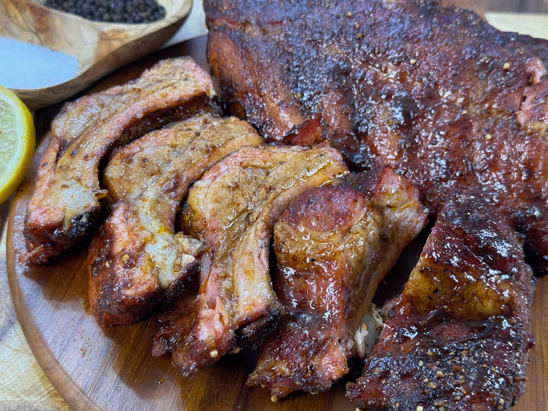 Both racks were seasoned the same way and cooked side-by-side with the same temperature and smoke. The only difference was that one rack stayed unwrapped the entire time while the other was wrapped partway through the cook.