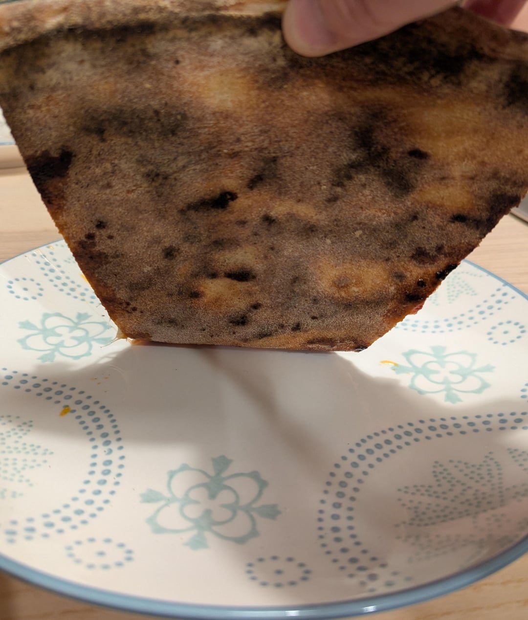 This is how you show the bottom of a slice. Thank you OP!! People need to stop flipping a slice face down on trays!!! The top of a slice should never hit the surface