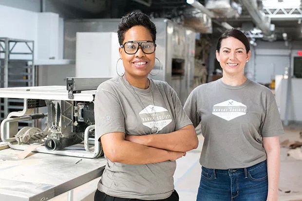 Jewel Edwards and Christina Decker in The Bakery Society Pittsburgh’s new space Credit: CP photo by John Colombo