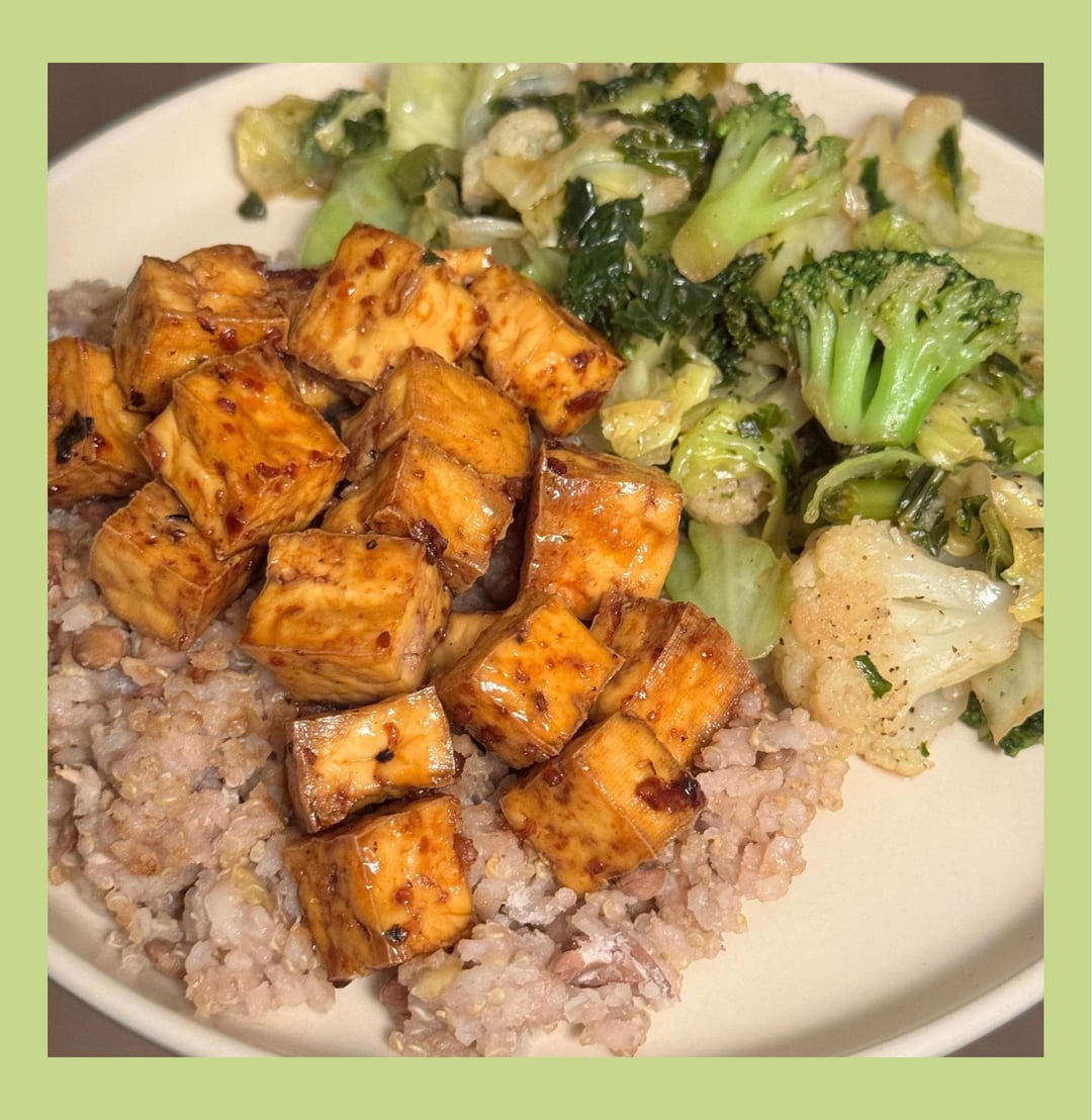 Miso-ginger salmon, brown rice, and lots of steamed broccoli!