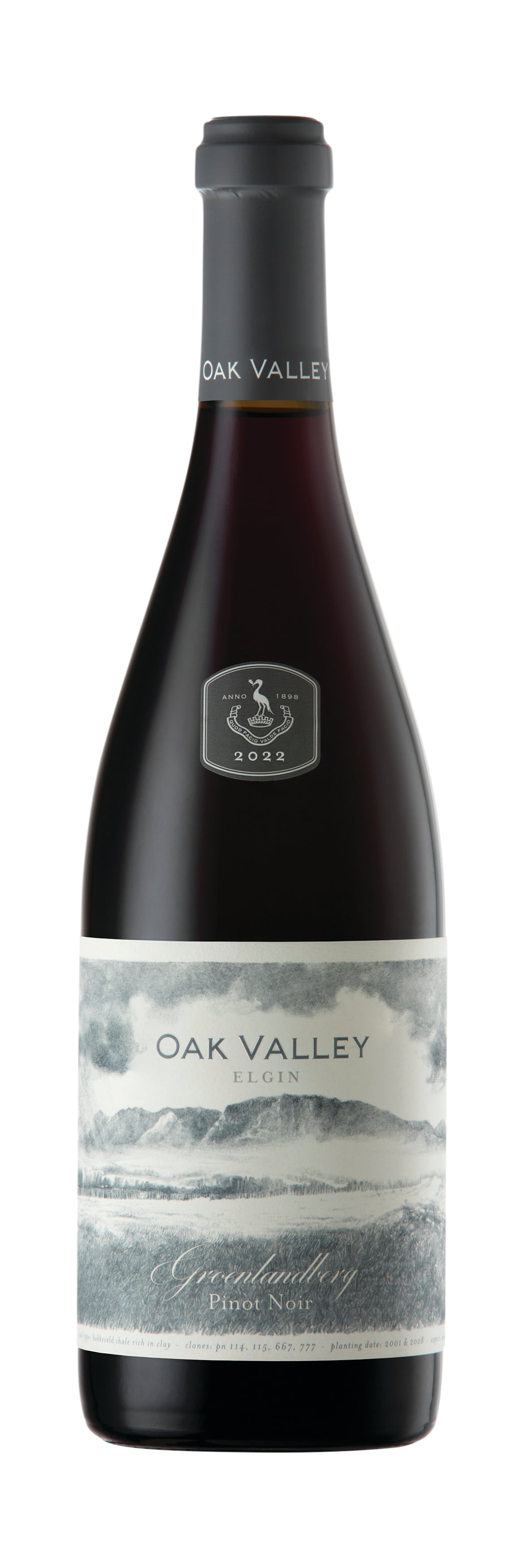 Oak Valley wines are grown in the high-altitude mountain valley of Elgin, on the foothills of the Groenlandberg, with their interesting names reflecting the nature of their environment in a cool climate known for delivering wines of clean, intense fruit purity and concentration, with distinctive steely minerality.